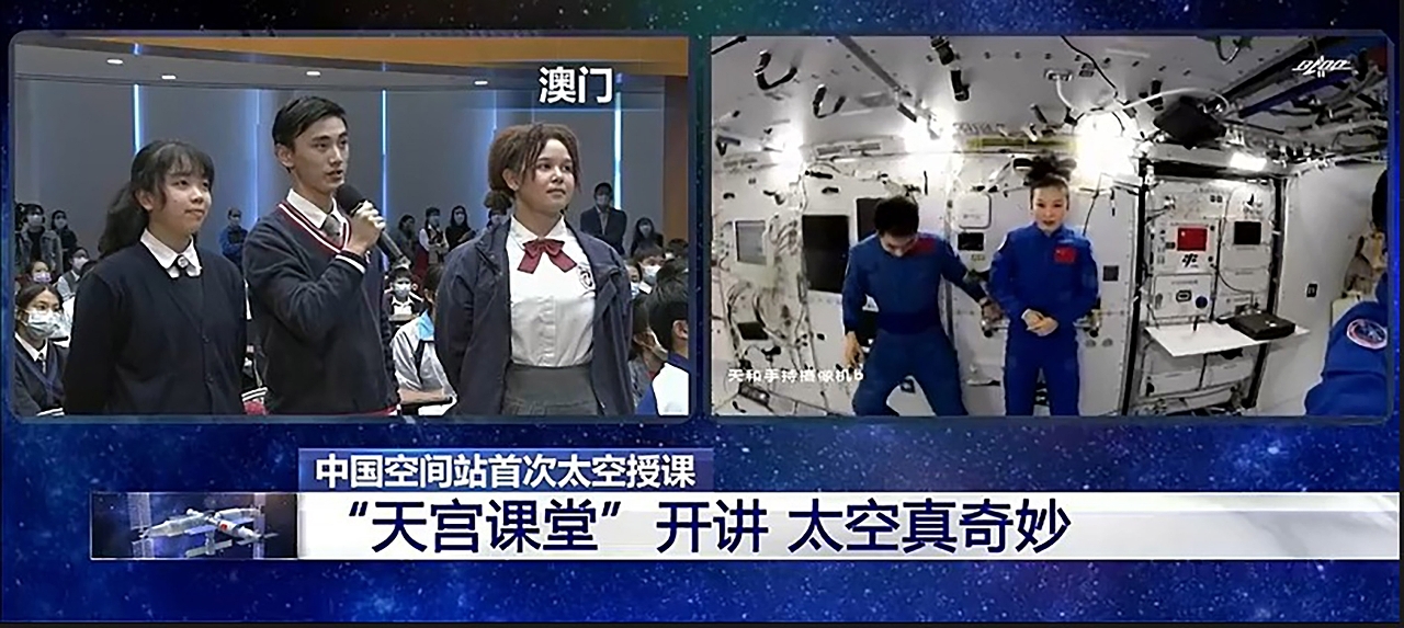 “天宮課堂”將結合載人飛行任務,貫穿中國空間站建造和在軌運營系列化推出,授課將由中國航天員擔任“太空教師”,以中、小學生為主要對象,採取天地協同互動方式開展。澳門科學館作為澳門的分會場,近170名澳門學生齊聚於此,與全國各地分會場同時與天宮太空站進行衛星連線,在科學館人員的協助下實時參與由航天員王亞平帶領的多個科普實驗,共同探索太空的奧秘。澳門學生代表更有難得機會與航天員進行“天地對話”,就天宮空間站上的日常工作和生活提問交流。同時,全澳超過一萬名學生亦於校內透過電視及互聯網,共同觀看是次太空授課直播,並於校內進行各類型的科普教育活動。