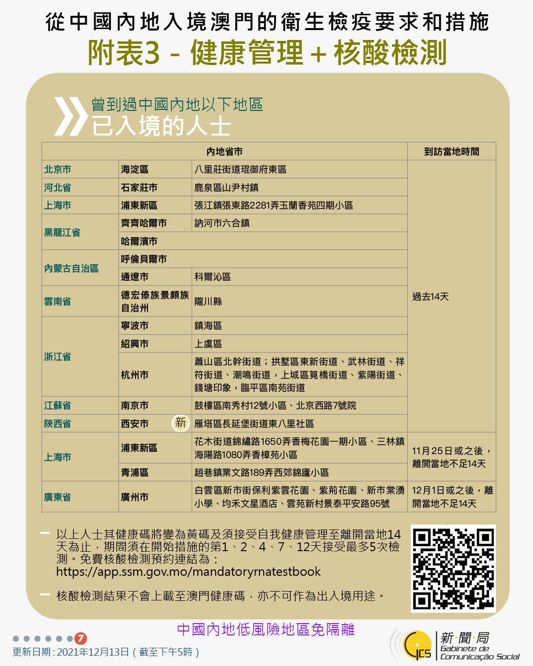 【圖文包】2021/12/13最新入境澳門衛生檢疫要求和措施