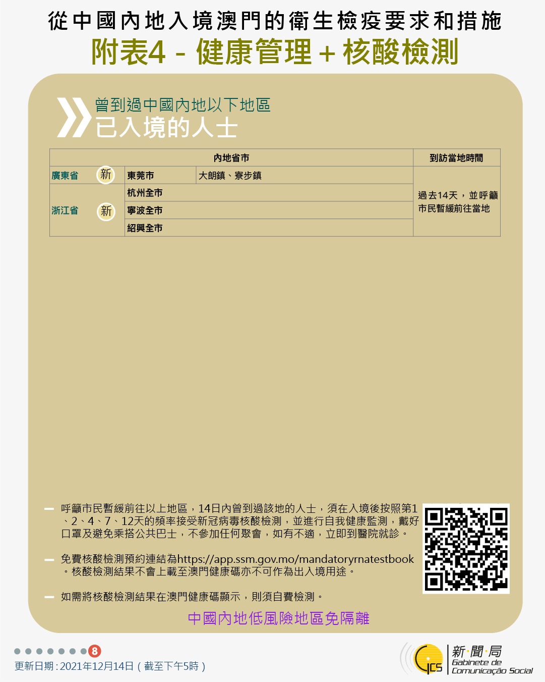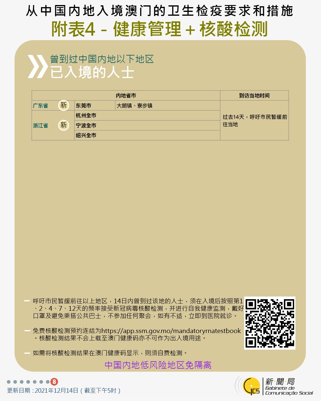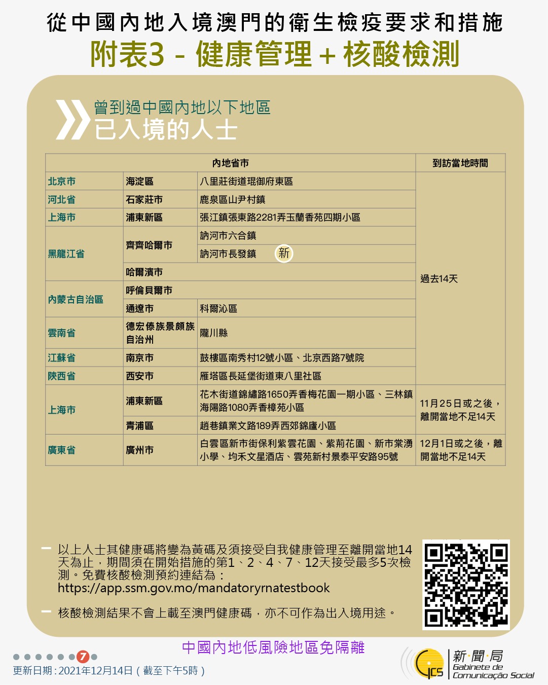 【圖文包】2021/12/14最新入境澳門衛生檢疫要求和措施