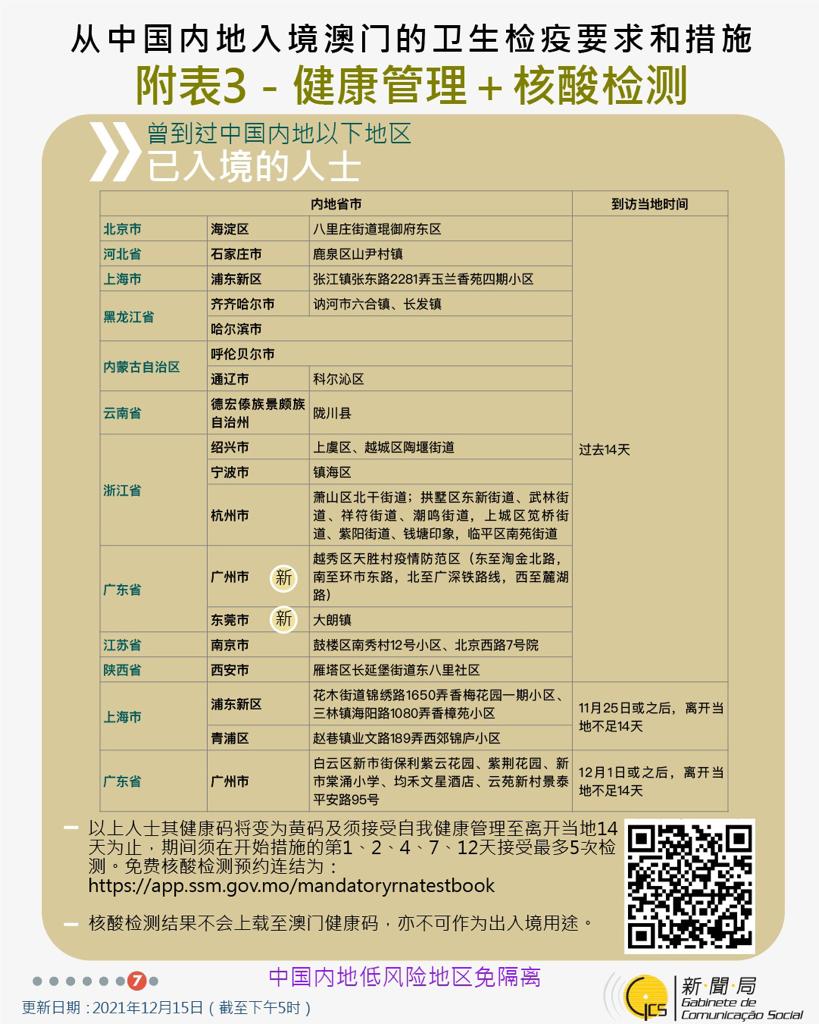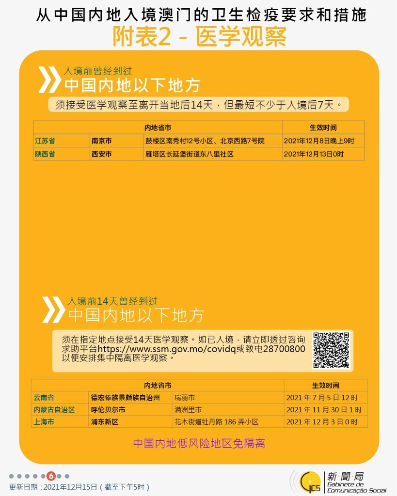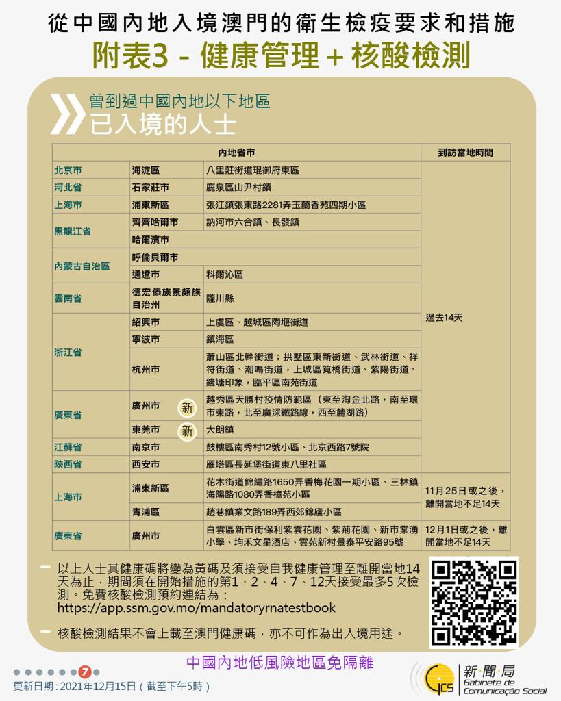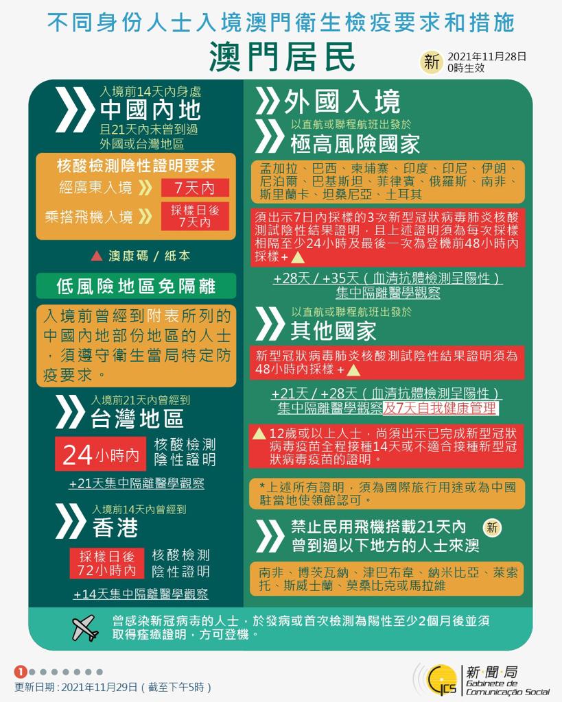 【圖文包】2021/12/15最新入境澳門衛生檢疫要求和措施