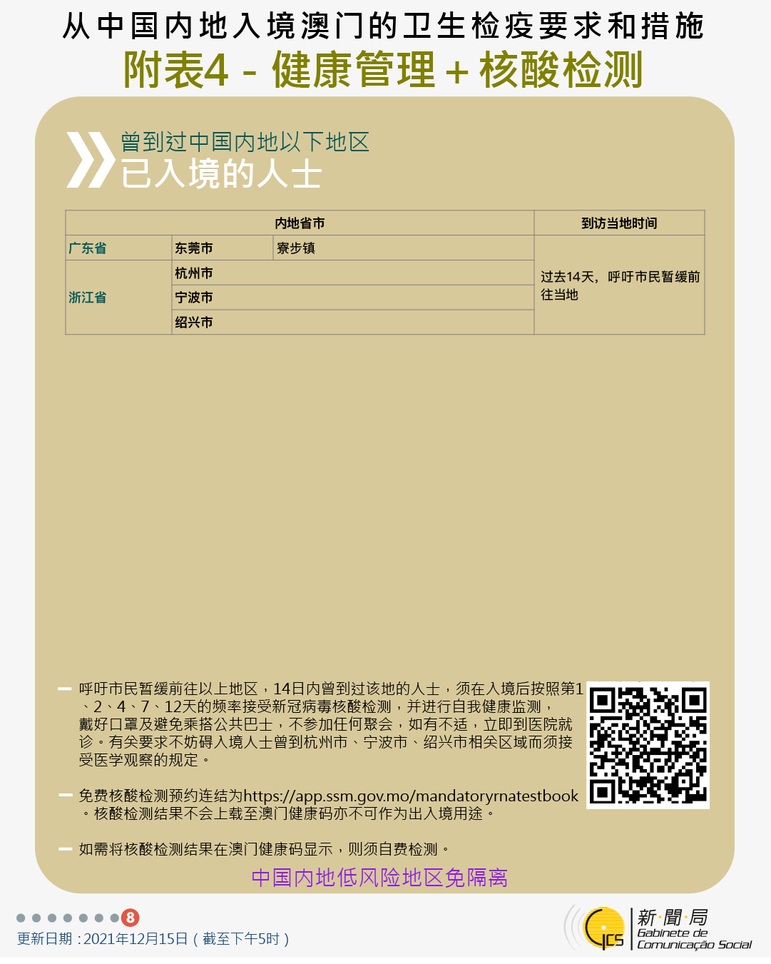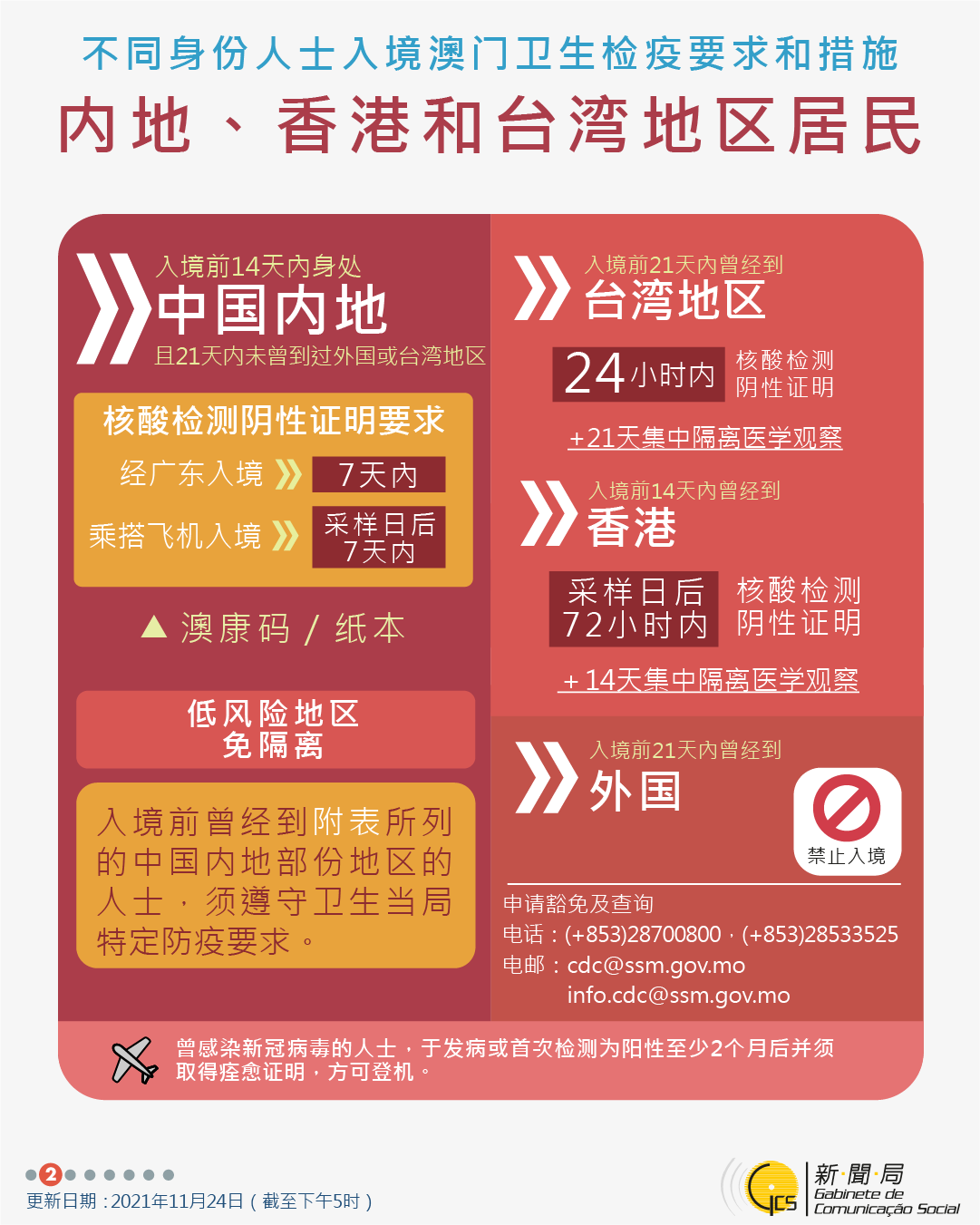 【圖文包】2021/12/16最新入境澳門衛生檢疫要求和措施