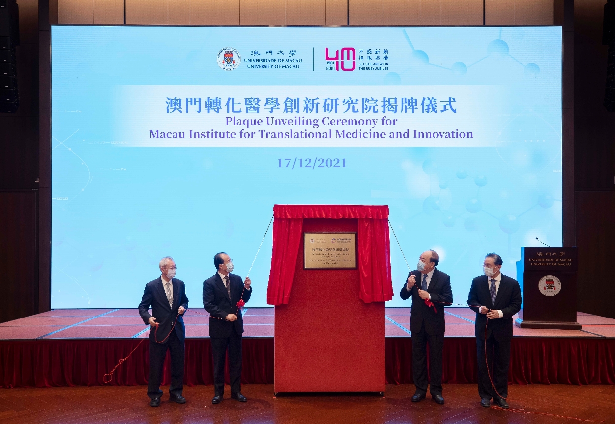 澳門大學“澳門轉化醫學創新研究院”今(17)日在澳大舉行揭牌儀式,由中國工程院院士、廣州實驗室主任、廣州醫科大學附屬第一醫院國家呼吸系統疾病臨床醫學研究中心主任鍾南山院士擔任該研究院的指導委員會主席。研究院將高效推進醫學科技創新,助力澳大生物醫學領域成果轉化,提升大灣區疾病防治水準,以創新中藥爲其重點任務,整合澳門及內地在中醫藥和轉化醫學領域的科技創新和人才資源,賦能技術轉化和產業在澳門落地發展。