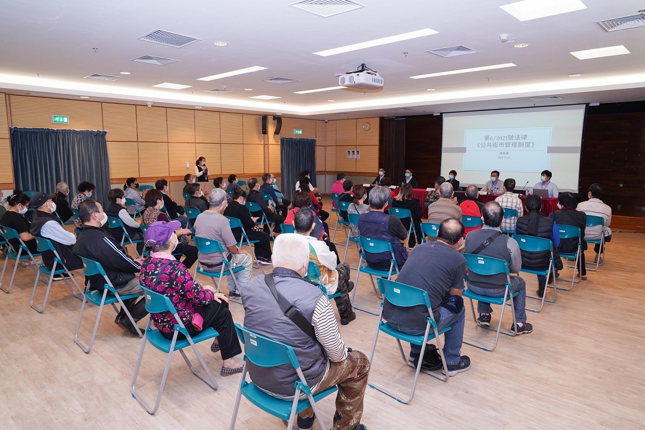 因應第6/2021號法律《公共街市管理制度》將於明年一月一日起生效,市政署於本年十月下旬至十二月上旬舉辦了十九場講解會,讓有關業界、現有街市攤位承租人,以及在公共街市及小販大樓內的小販准照或散檔准照持有人更了解有關新法律的規定,尤其是作為攤位承租人的權利及義務,以及新法律的過渡安排。