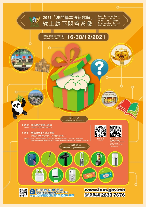 為積極推動愛國愛澳情懷,並讓市民對澳門基本法紀念館有更多認識,市政署於12月16日至30日期間舉辦“2021‘澳門基本法紀念館’線上線下問答遊戲”。