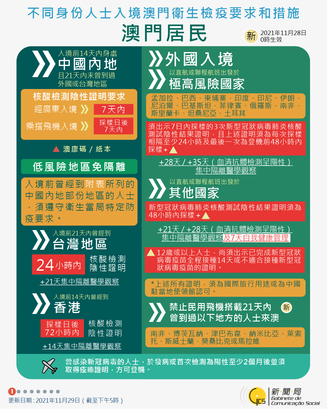 【圖文包】2021/12/28最新入境澳門衛生檢疫要求和措施