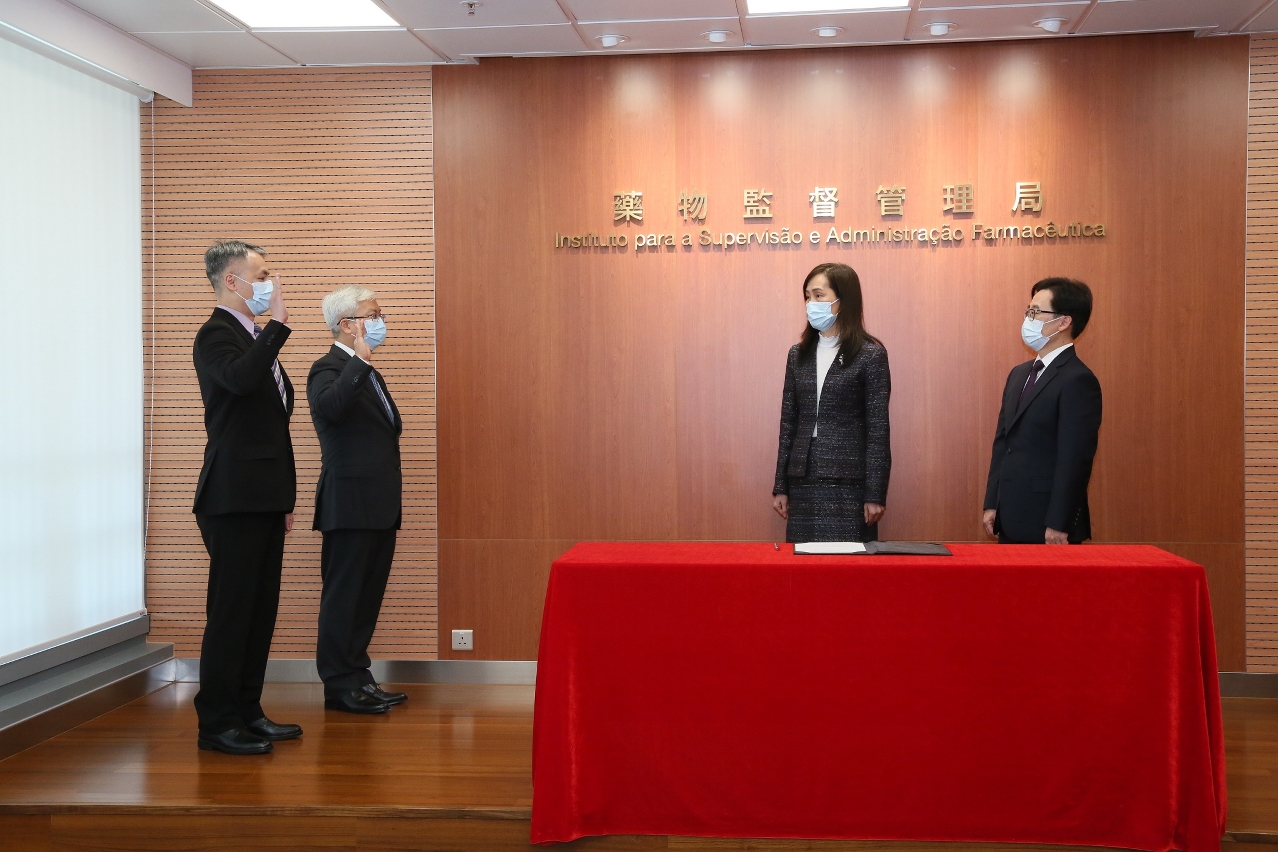 藥物監督管理局今(4)日在位於青茂口岸澳門邊檢大樓19樓的藥物監督管理局多功能會議室舉行吳國良副局長、李世恩副局長和各主管人員的就職儀式。