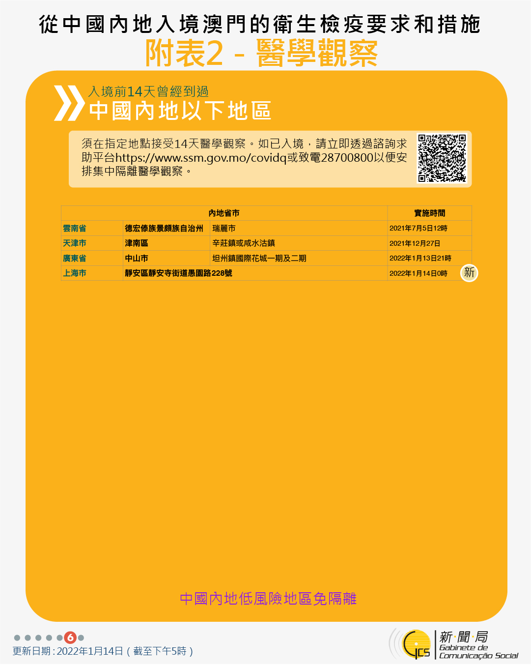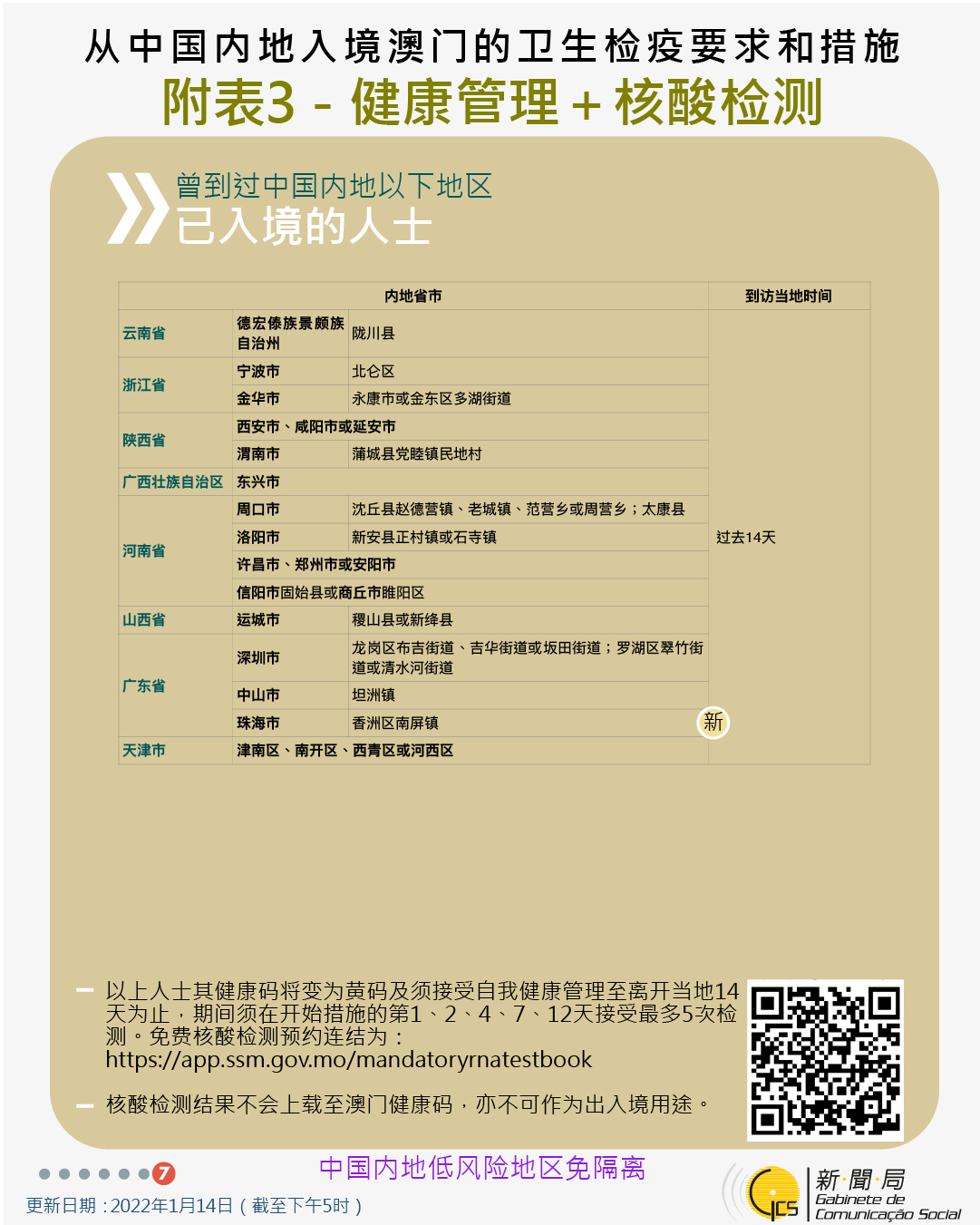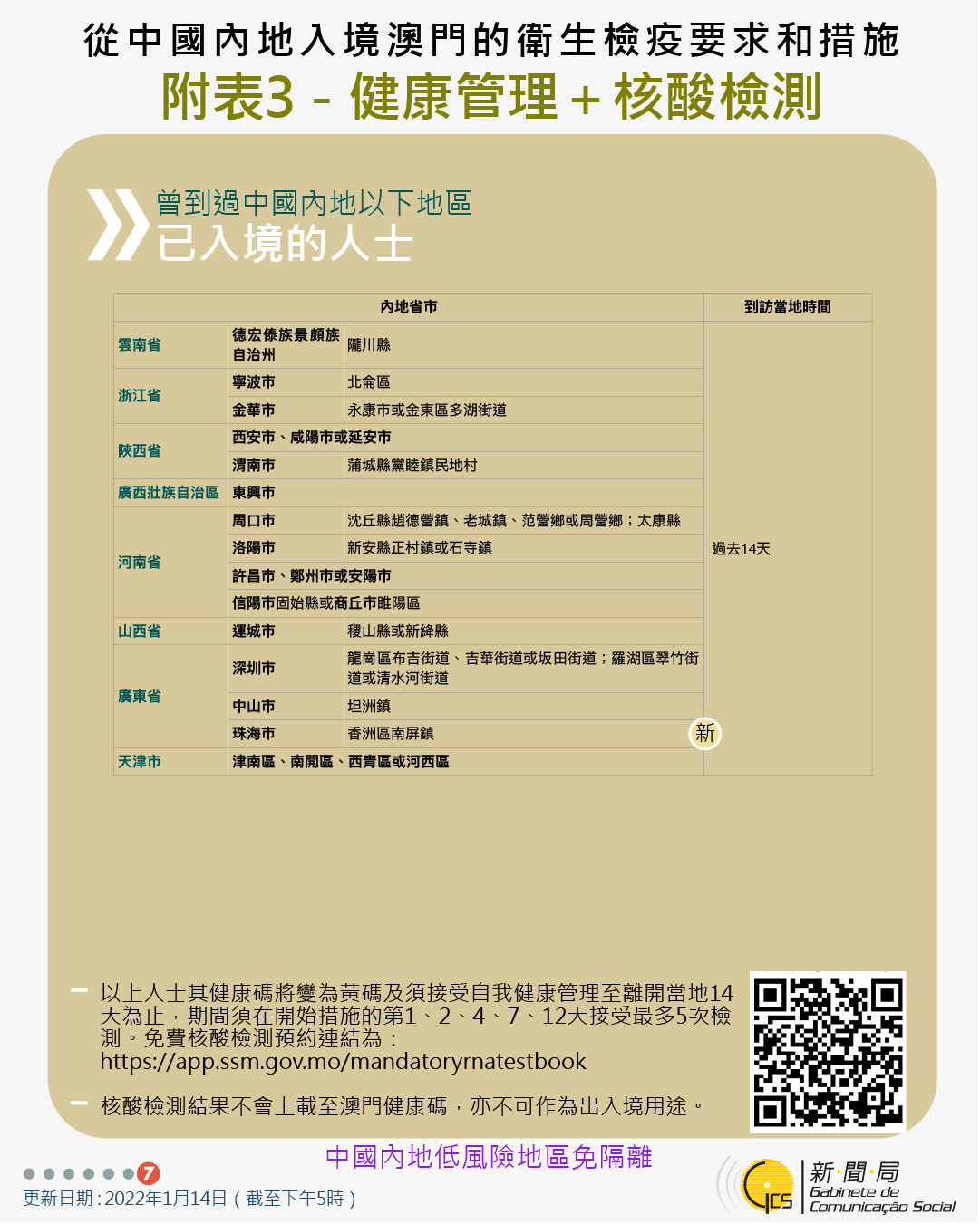 【圖文包】2022/1/14最新入境澳門衛生檢疫要求和措施