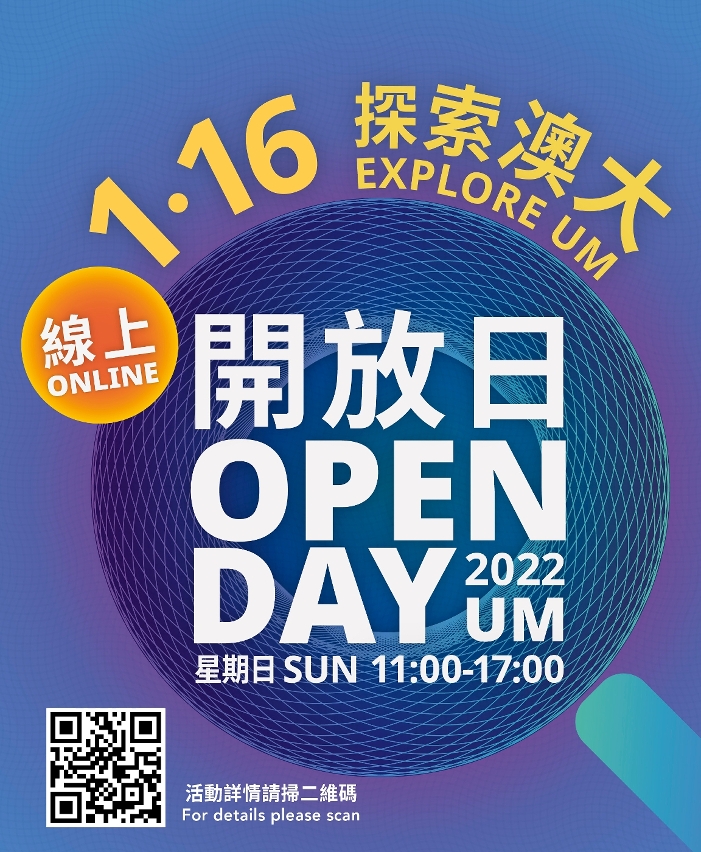 澳門大學將於1月16日(星期日)舉行首個線上開放日,透過線上啟動儀式、講座、課程諮詢、展覧、遊戲、大抽獎等,讓大眾了解澳大最新的入學資訊、教學特色、研究成果等。歡迎澳門和海內外的學生、家長和朋友於當天上午11時至下午5時線上參與。