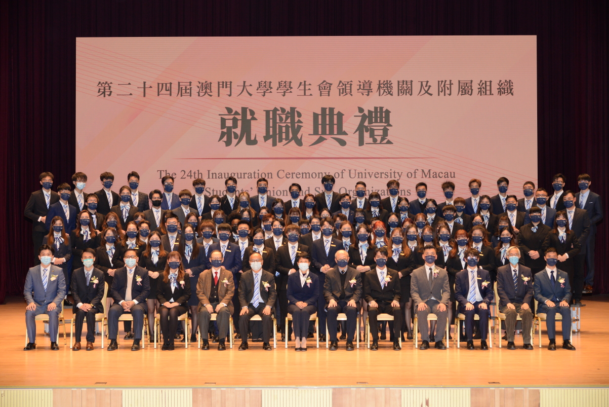 中聯辦教育與青年工作部部長徐婷、澳大校長宋永華和教育暨青年發展局代廳長張子軒主持監誓。宋永華祝賀學生會成員順利就職,他表示學生會歷年來充分發揮橋樑和紐帶作用,為澳大學生謀求福利,保障利益。宋永華亦感謝全體人員,特別是在防疫時期,所有事情都處理得井井有條,期望在接下來的一年裡,在粵港澳大灣區發展的新機遇下繼續攜手協作,為澳門的發展定位作出貢獻。