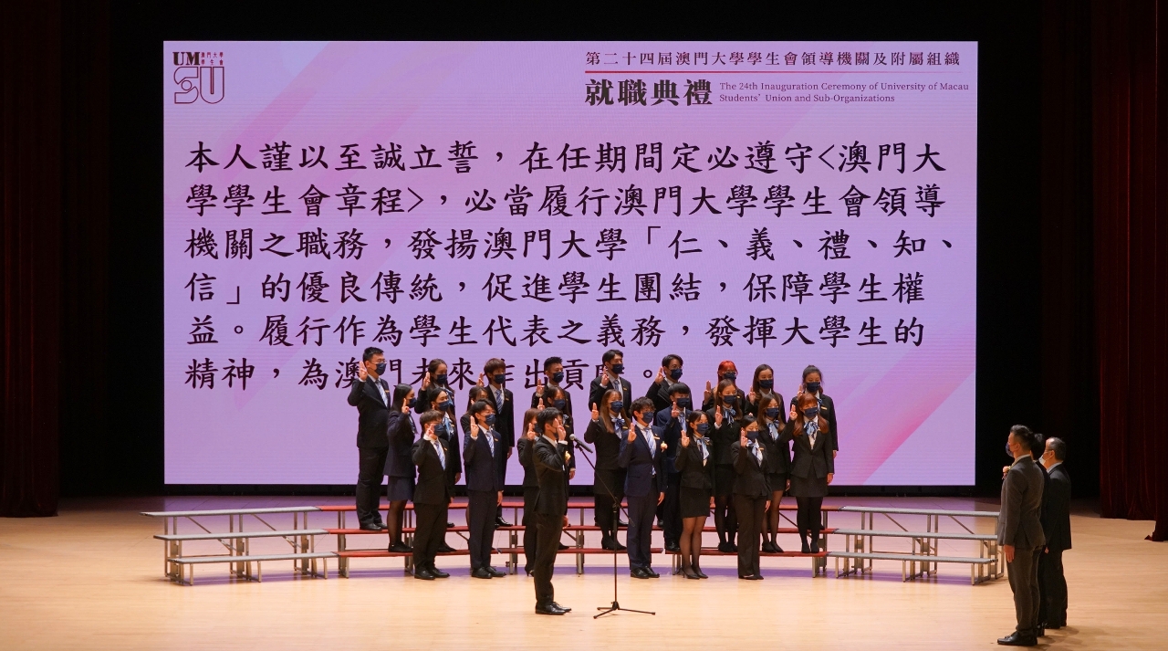 澳門大學學生會舉行第24屆澳大學生會領導機關及其附屬組織就職典禮,在各界社團、商會、校外組織及各高校學生會代表的見證下進行宣誓儀式。