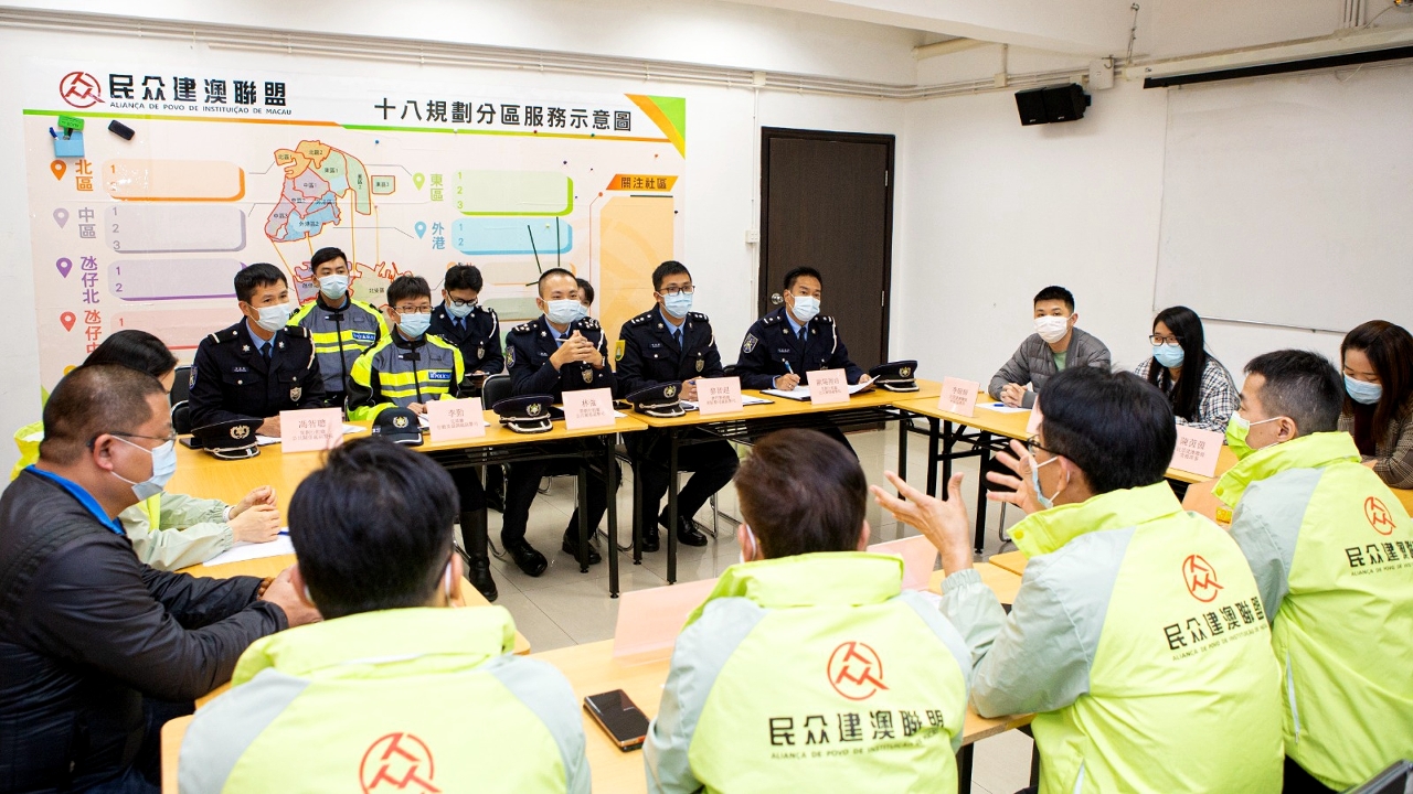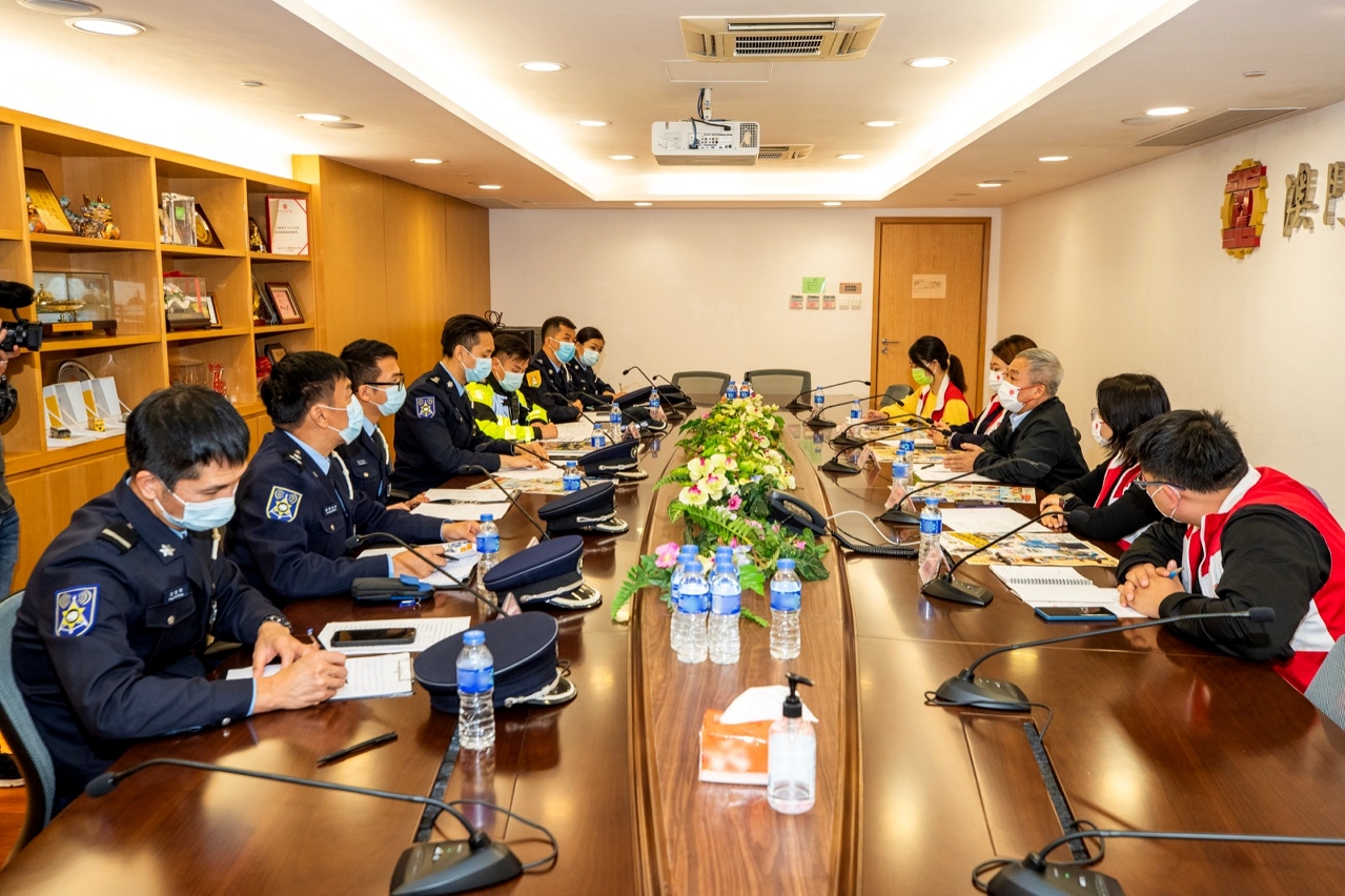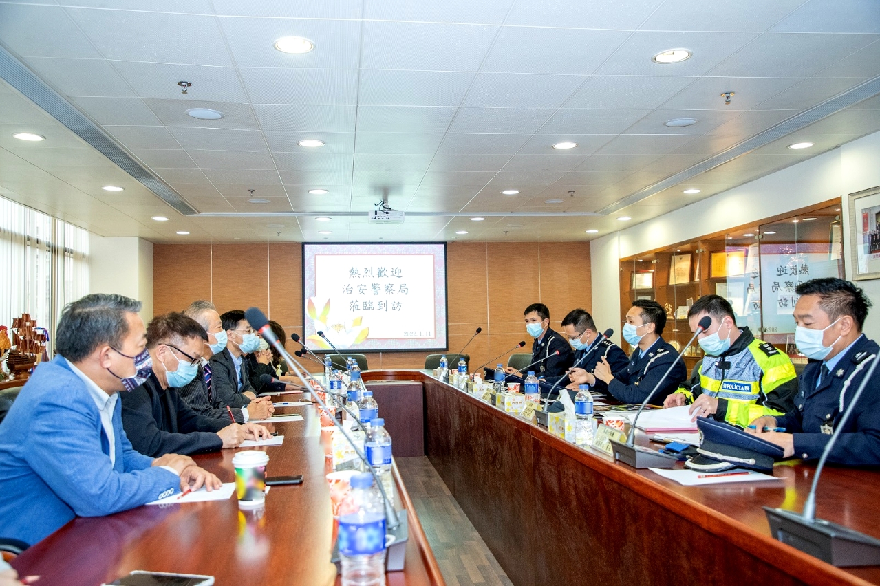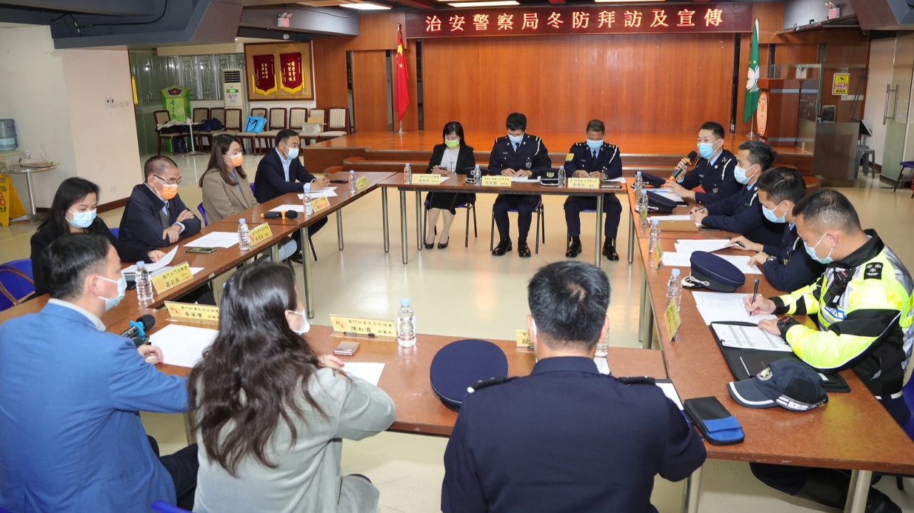 為持續優化「社區警務聯絡機制」,以及聽取社團代表對治安、交通、冬防工作等方面的意見和建議。於本月上旬,治安警察局策劃行動廳馬超雄代廳長、公共關係處李德輝處長及林強警司、澳門警務廳西南區警務處蔣少鑫代處長及交通廳交通偵查及支援處黃志宏代處長等多名主管,分別拜訪澳門社會民生促進會、澳門工會聯合總會、澳門街坊會聯合總會、澳門歸僑總會、民眾建澳聯盟、澳門物業管理專業人員協會、澳門婦女聯合總會、澳門餐飲業聯合商會、澳門中華新青年協會及澳門中華學生聯合總會。當中澳門社會民生促進會陳溥森會長、澳門工會聯合總會馮家輝副會長、澳門街坊會聯合總會陳家良理事長、澳門歸僑總會趙文炎副會長、民眾建澳聯盟歐陽廣球副理事長、澳門物業管理專業人員協會周嘉進會長、澳門婦女聯合總會吳嘉婷副理事長、澳門餐飲業聯合商會李汝榮理事長、澳門中華新青年協會劉佐春副會長及澳門中華學生聯合總會繆敏立副理事長與多位社團代表出席會議。