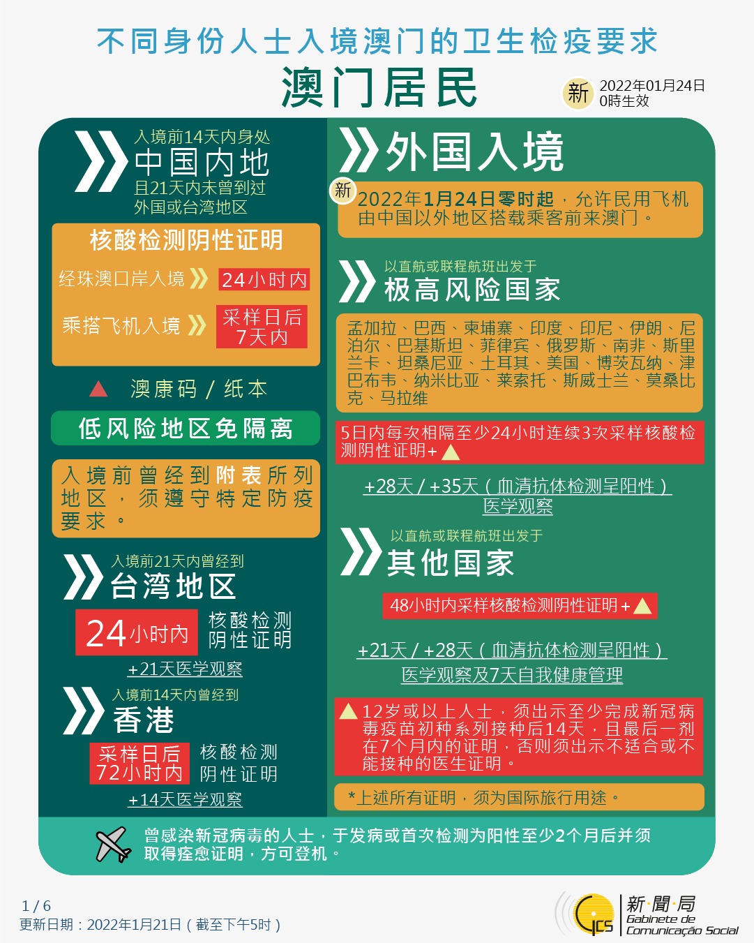 【圖文包】2022/1/21最新入境澳門的衛生檢疫要求