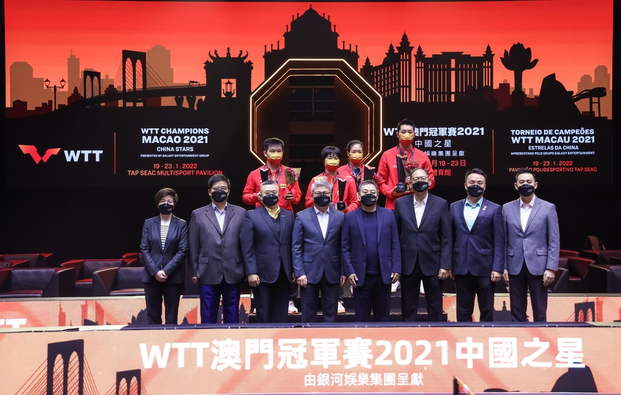 由體育局及WTT世界乒乓球職業大聯盟主辦、澳門乒乓總會協辦的「WTT 澳門冠軍賽 2021中國之星 ─ 由銀河娛樂集團呈獻」今日(22日)進行第四日賽事,混雙錦標由許昕/劉詩雯組合擊敗樊振東/蒯曼奪得;另外,男單產生四強,晉級球手包括林高遠、徐瑛彬、王楚欽及許昕。賽事明日(23日)將上演壓軸日賽事,進行男子、女子單打的準決賽和決賽,球迷萬勿錯過。
