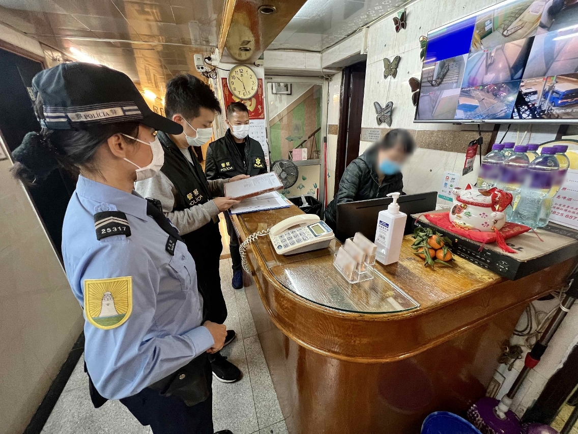 在警察總局統籌下,治安警察局持續開展「冬防行動2022」,確保本澳在歲晚及春節期間保持良好的治安環境。於1月22日至23日凌晨,治安警察局澳門警務廳、海島警務廳、交通廳及情報廳合共派出50名人員,分別在澳門北區、中區、新口岸區、南灣區、氹仔市區、路氹城金光大道及路環一帶截查可疑人士,並巡查了澳門多間桌球室、按摩中心及賓館,以預防及打擊各種不法行為,同時在各區進行查車行動,打擊醉駕藥駕等違法行為。