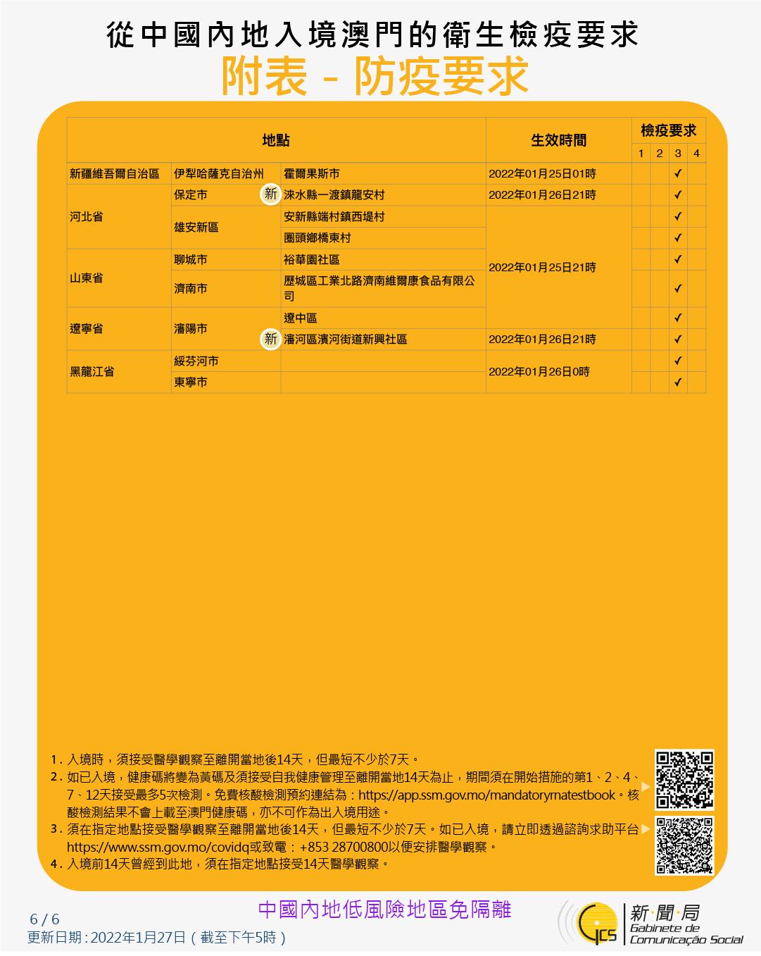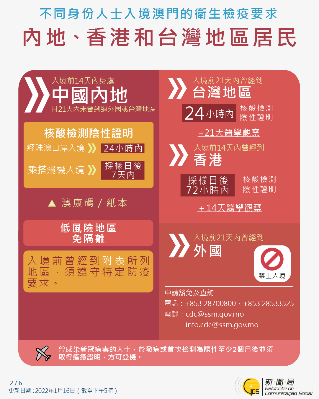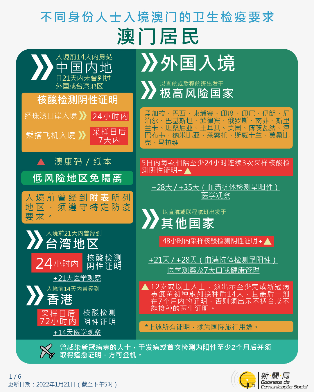 【圖文包】2022/1/27最新入境澳門衛生檢疫要求