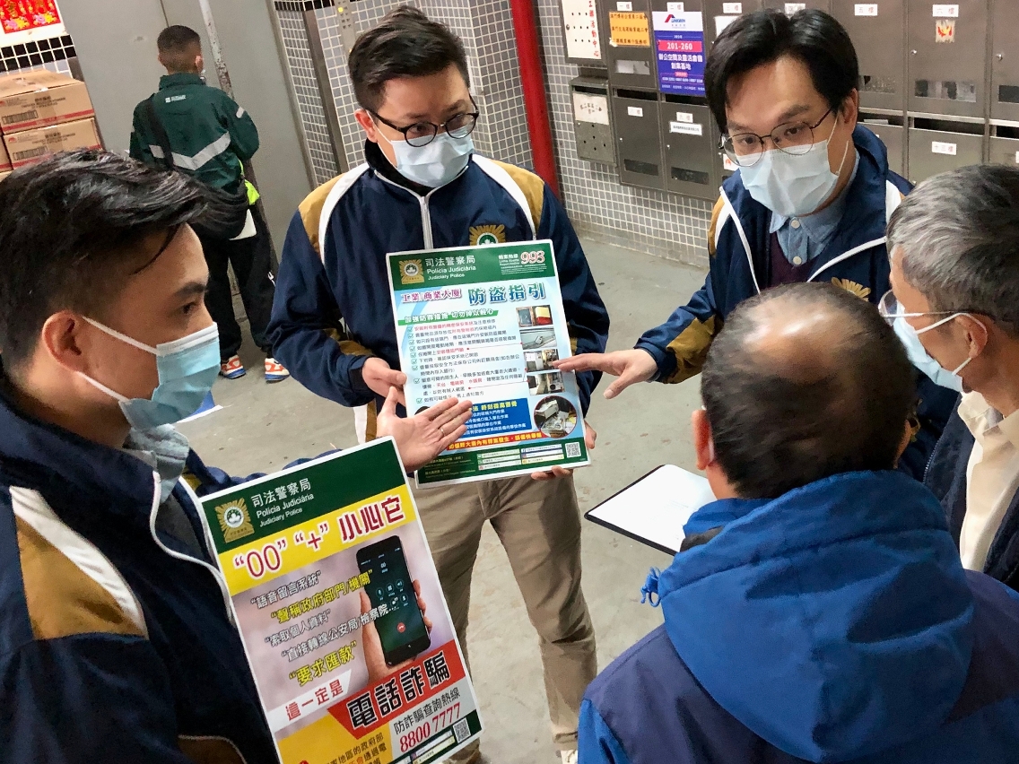 此外,由於不少工商業機構於新春期間休業,相關區份及大廈人流減少,不法之徒可能會趁機作案,司警局加派人員巡查本澳各區的工商業大廈,向物管人員講解冬防資訊,提醒他們在假期期間應加強大廈保安工作,尤其須留意有否可疑人士進出大廈,如發現或懷疑發生罪案,應在保障自身安全下立即向警方舉報。
