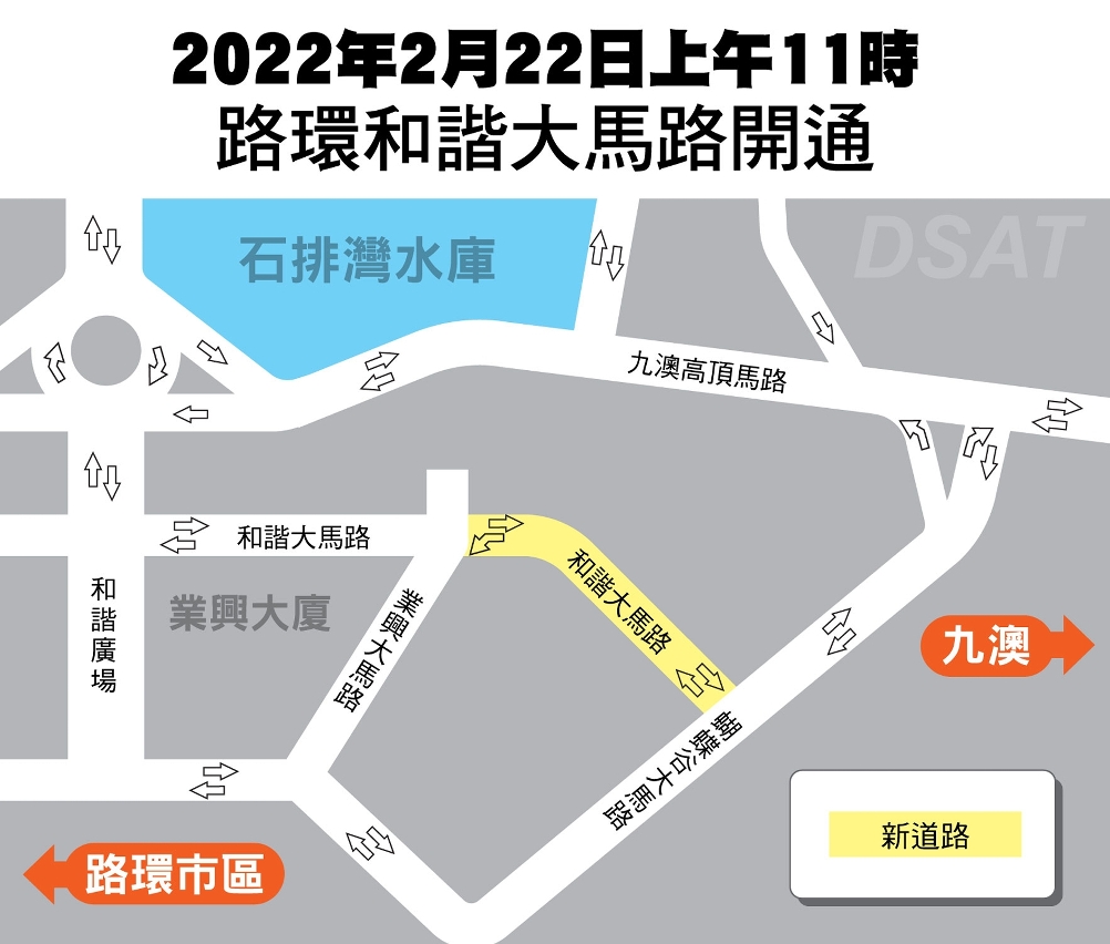 位於路環業興大馬路與蝴蝶谷大馬路之間的一段和諧大馬路,將於2月22日上午11時正式開通,進一步完善路環石排灣及九澳高頂馬路一帶的路網。