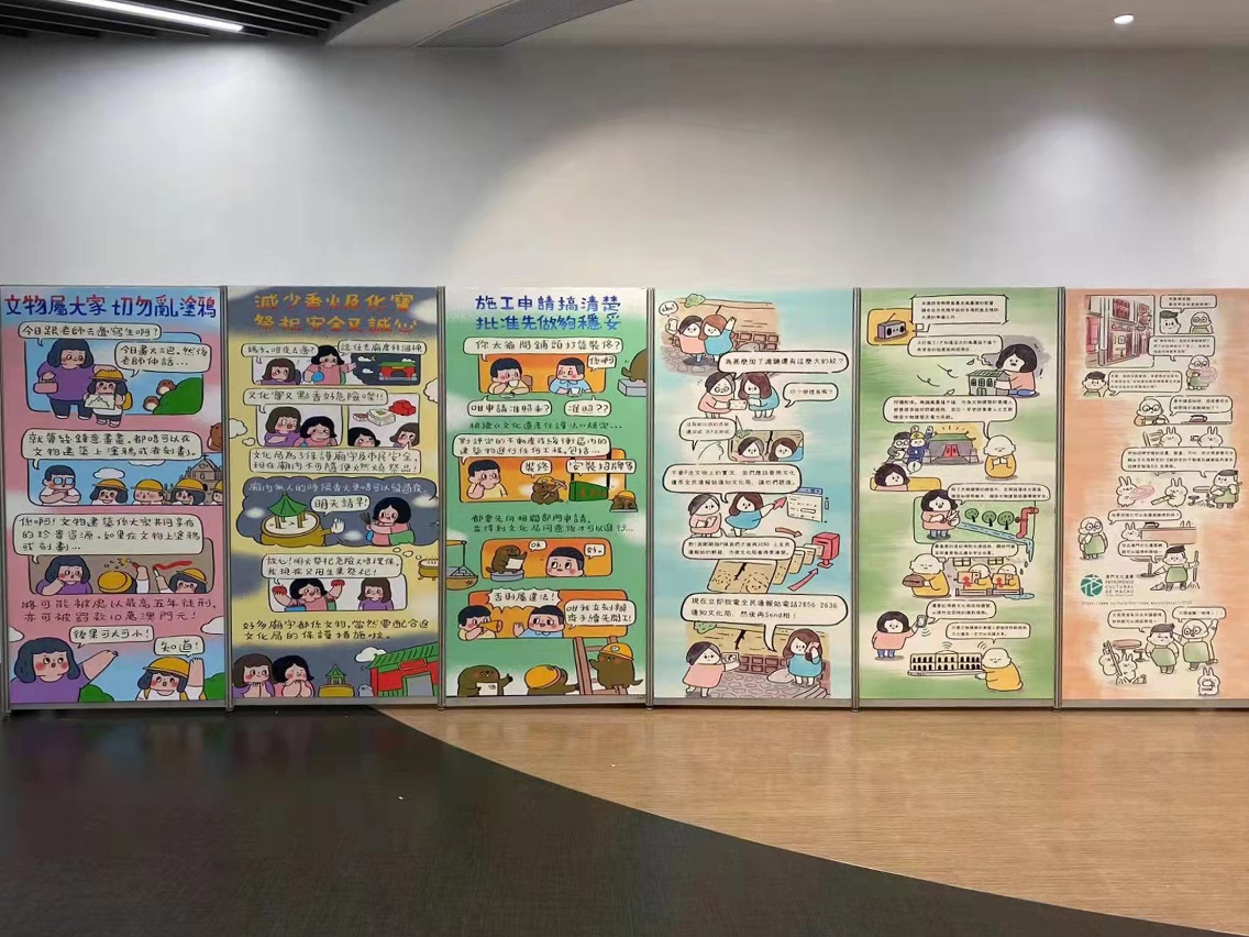 此外,文化局轄下四間公共圖書館包括石排灣圖書館、沙梨頭圖書館、何東圖書館、氹仔圖書館,以及四間高等院校亦巡迴設置漫畫展板,以有趣生動的四格漫畫讓市民瞭解文遺保護資訊。