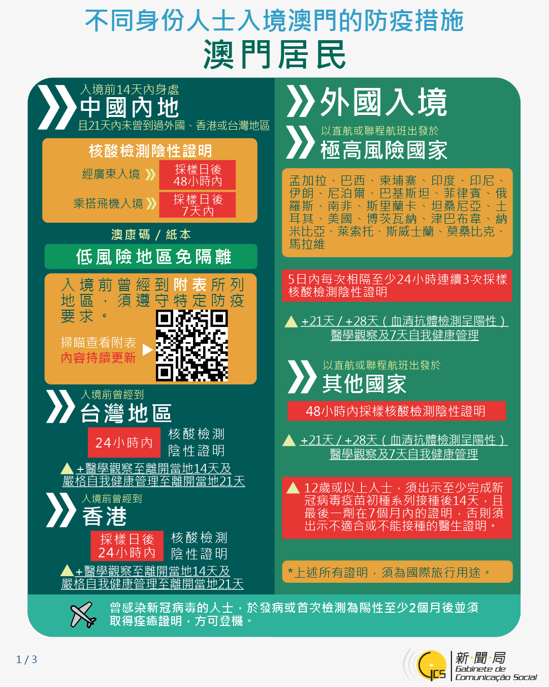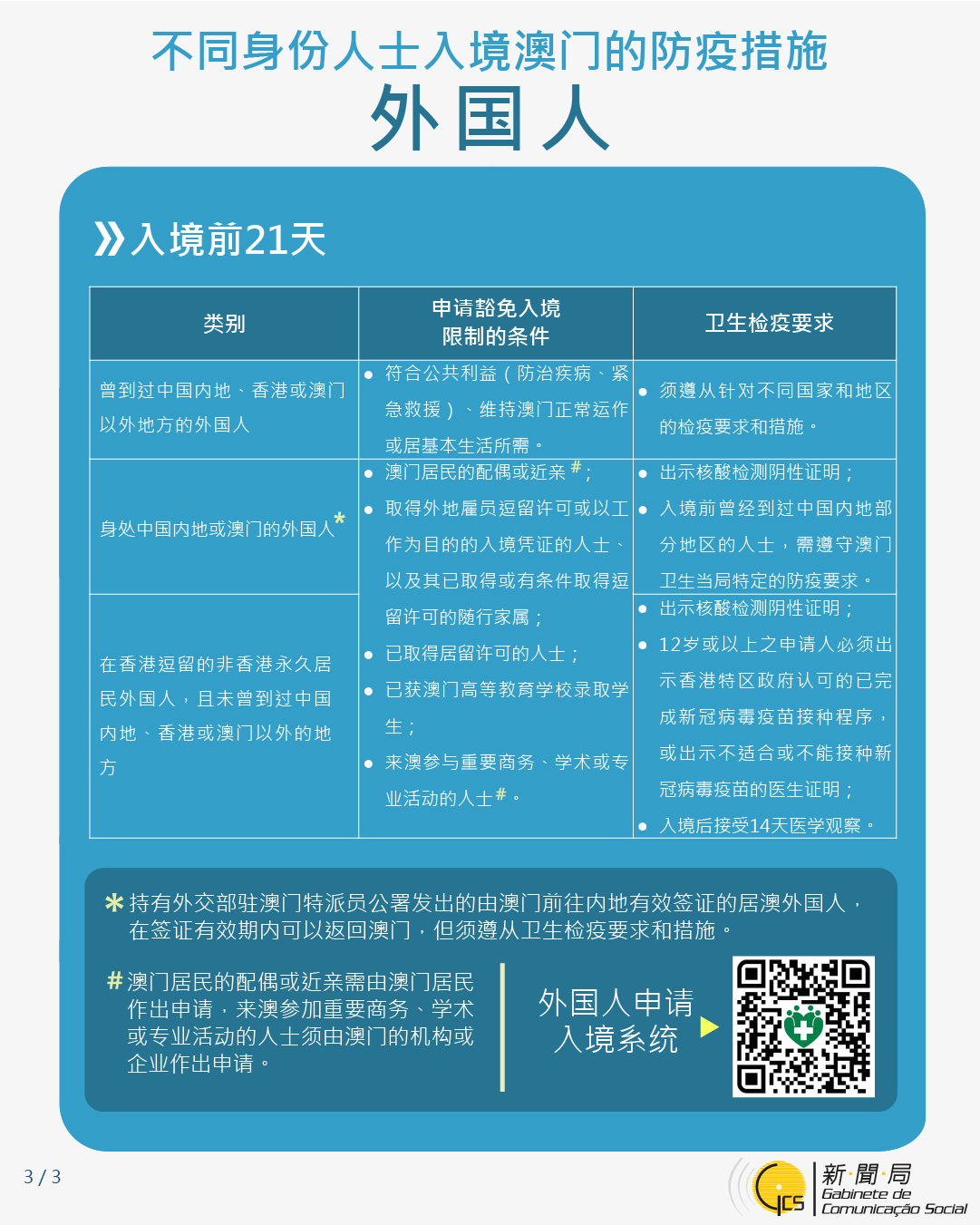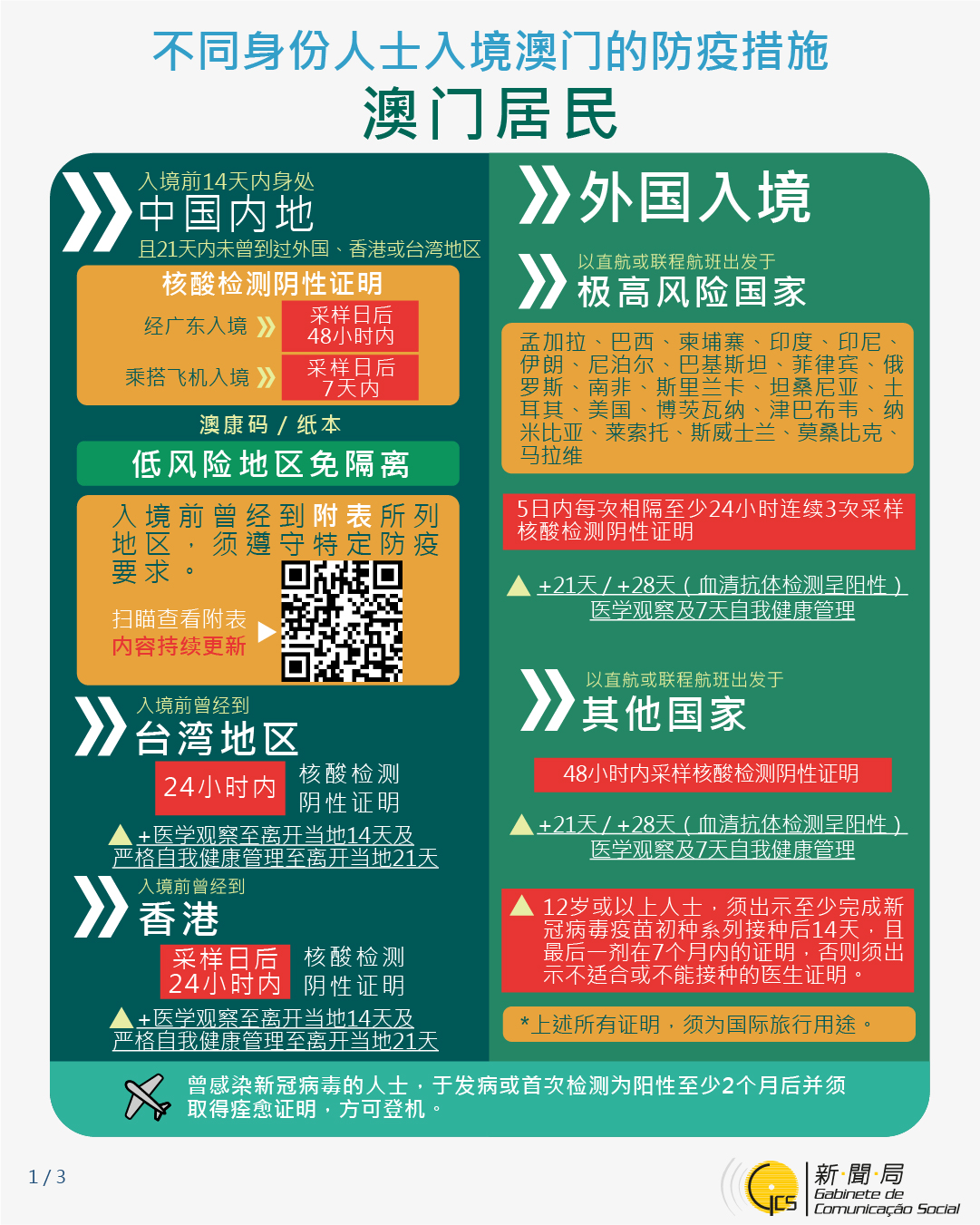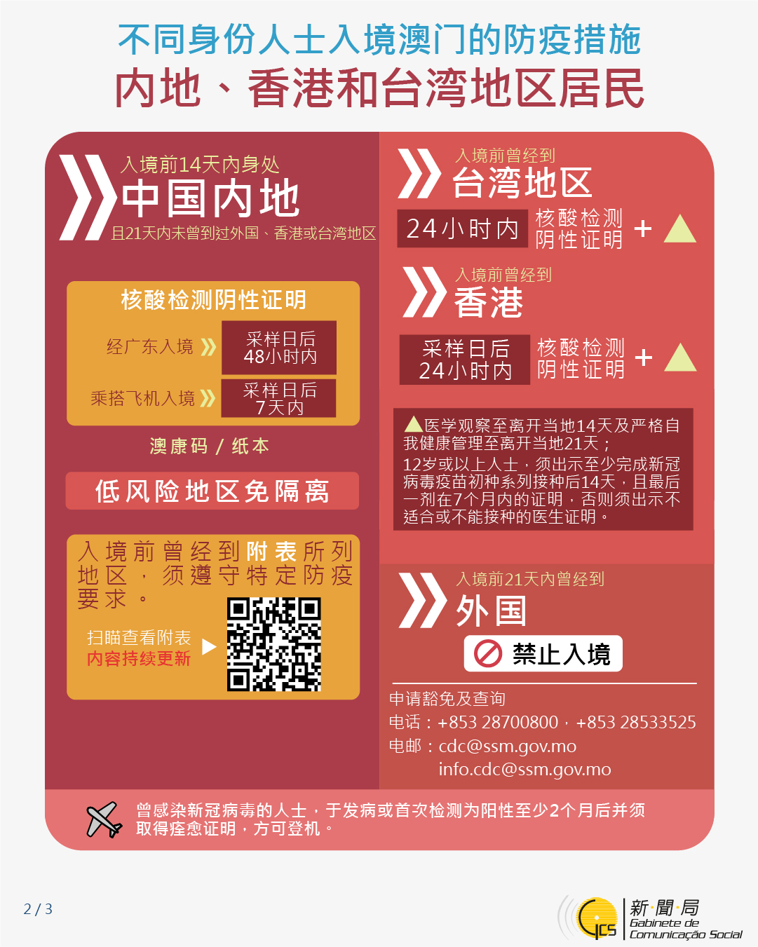不同身份人士入境澳門的防疫措施