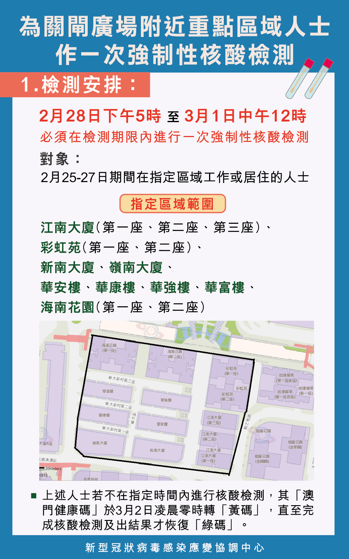 為關閘廣場附近重點區域人士作1次強制性核酸檢測 圖文包