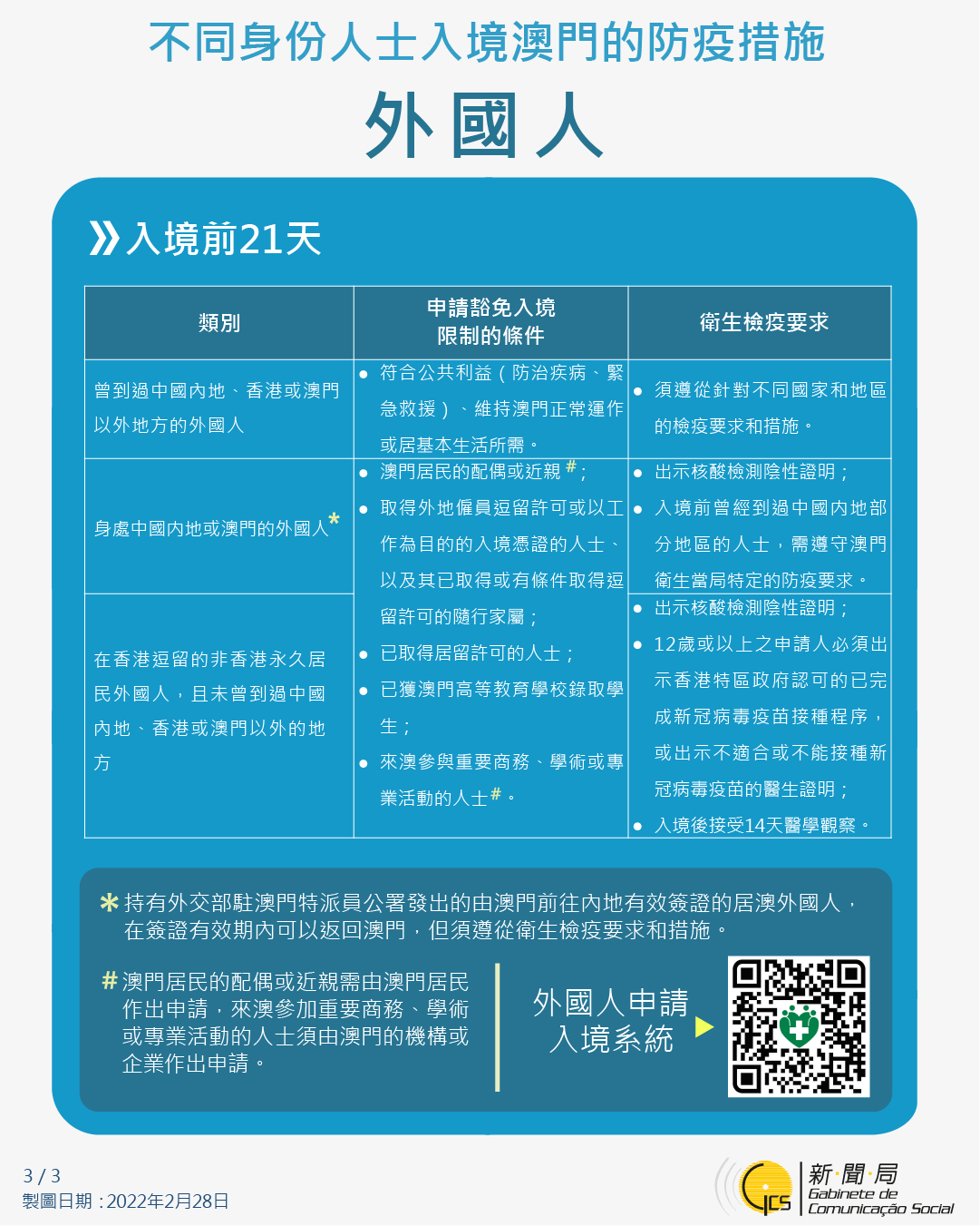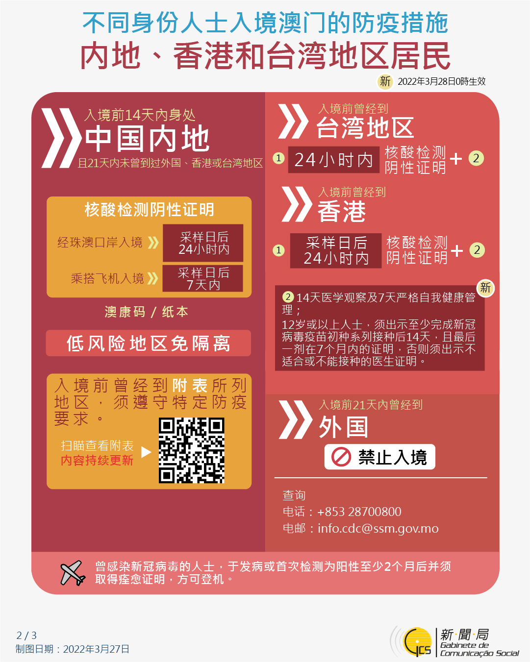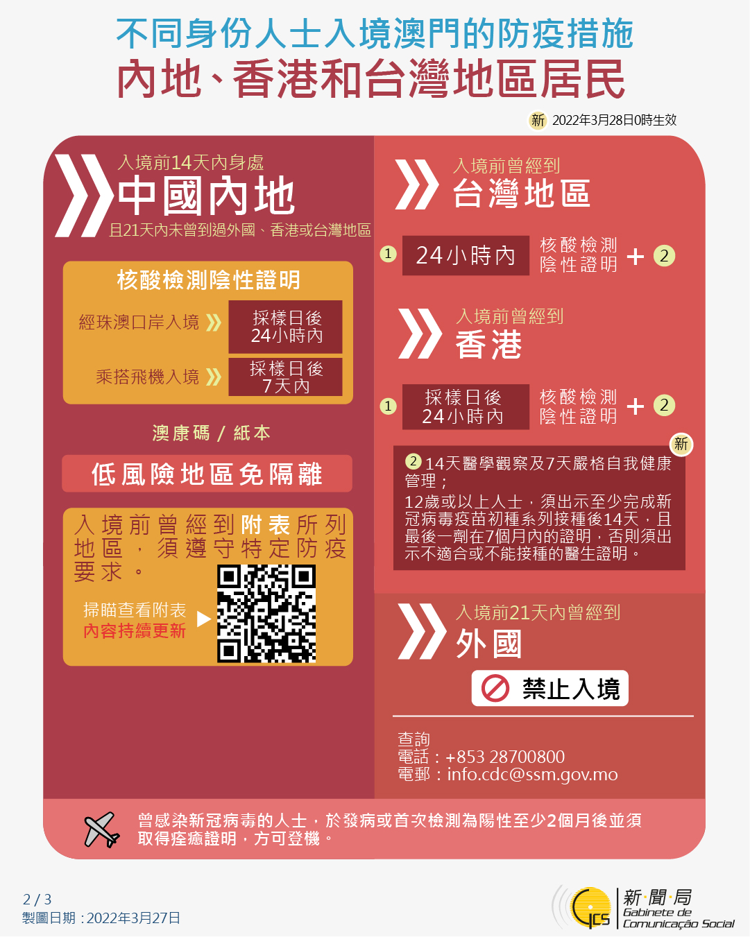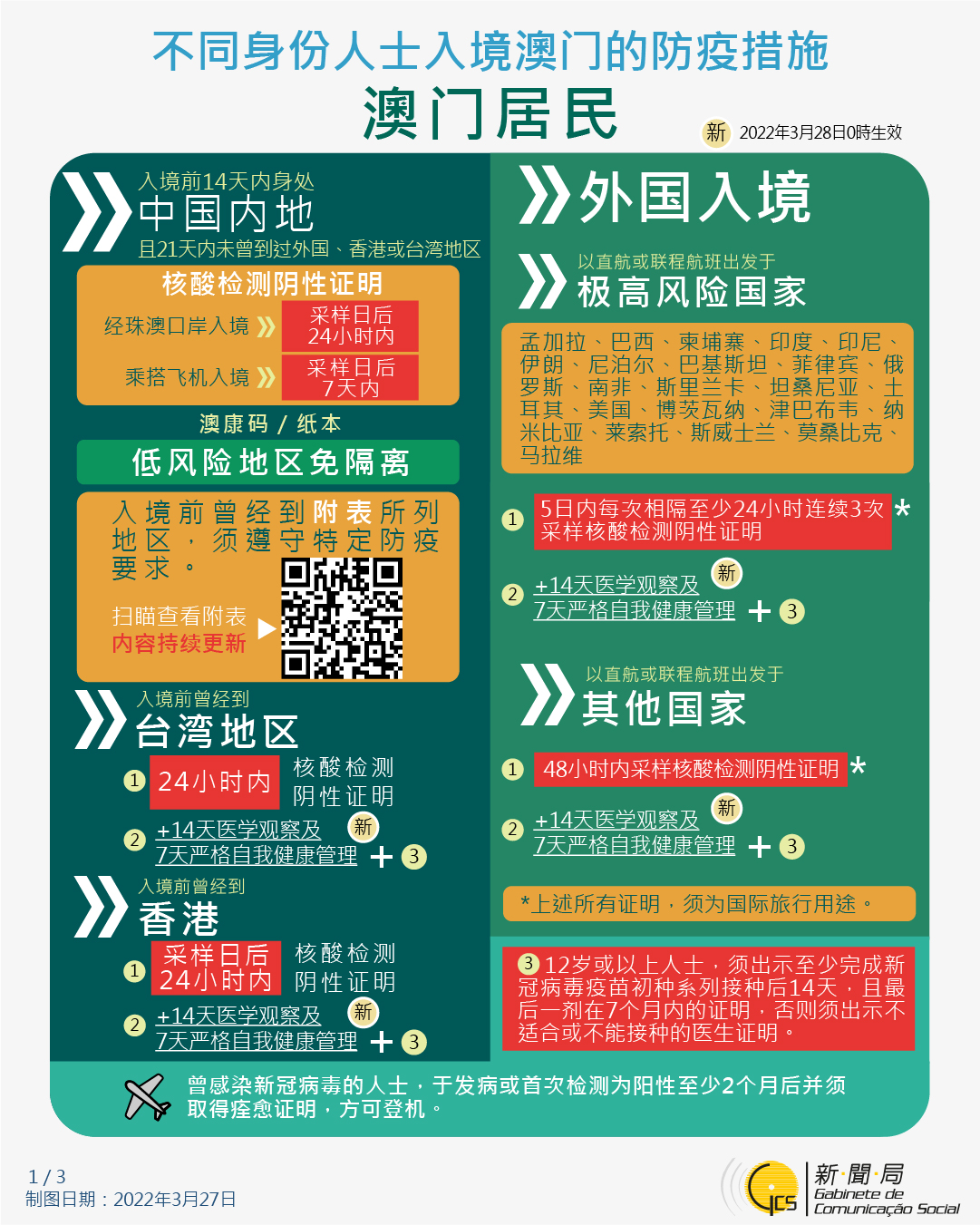 【圖文包】2022/3/27最新入境澳門的防疫措施