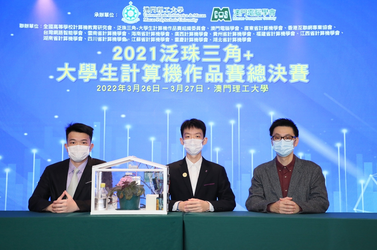 澳門理工大學學生鐘艾寧、司徒熹及田辰靚組成的隊伍,發揮優異,勇奪一等獎,作品“提高人類環保意識的溫室物聯網系統”旨在建造一個供家用的物聯網全天候智能溫室。提供了全面的環境控制,可有效地模擬植物生長所需的任何氣候環境,建造大數據進行科研分析,優化溫室養殖環境,並提高人們的環保意識。