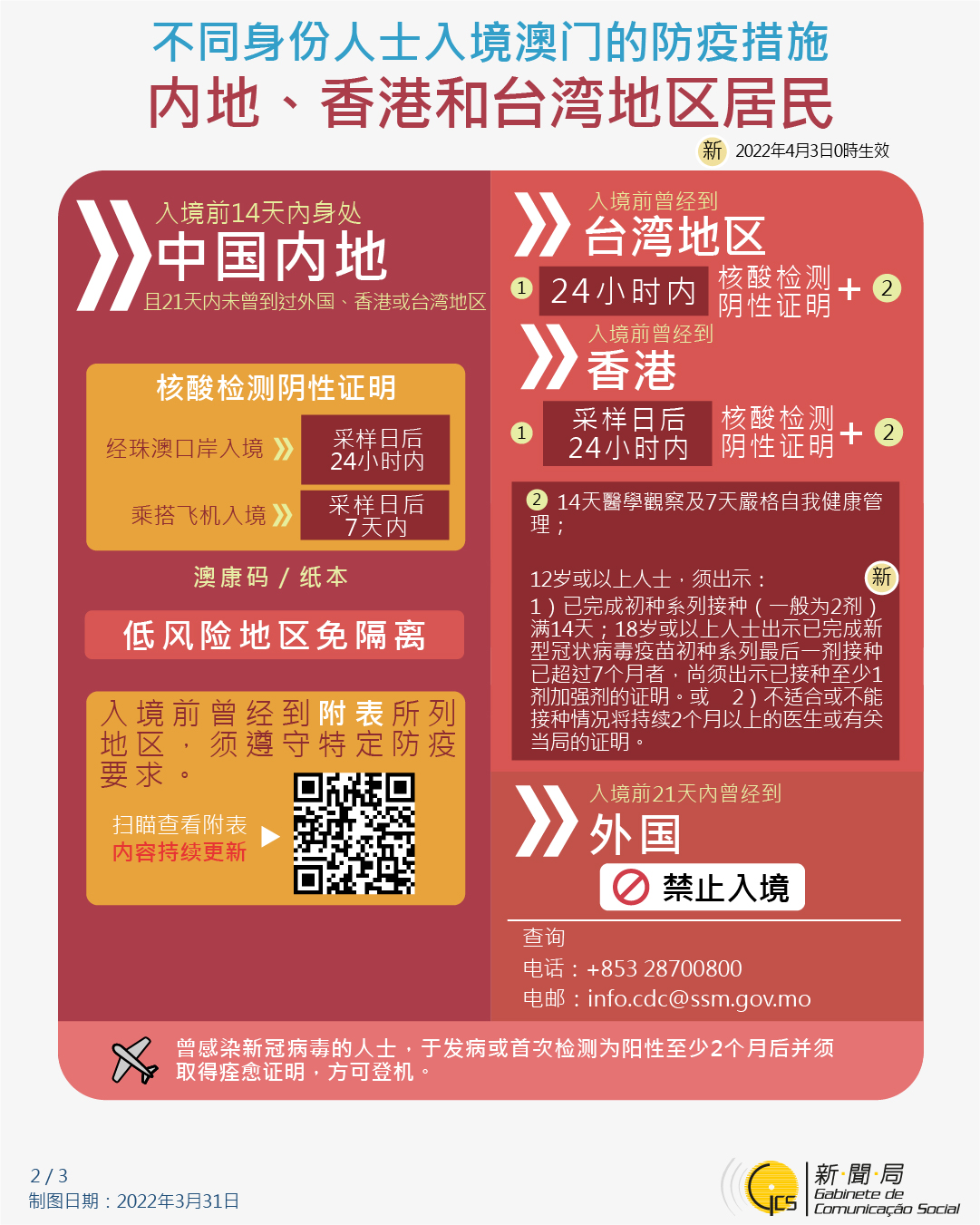 【圖文包】2022/3/31最新入境澳門的防疫措施