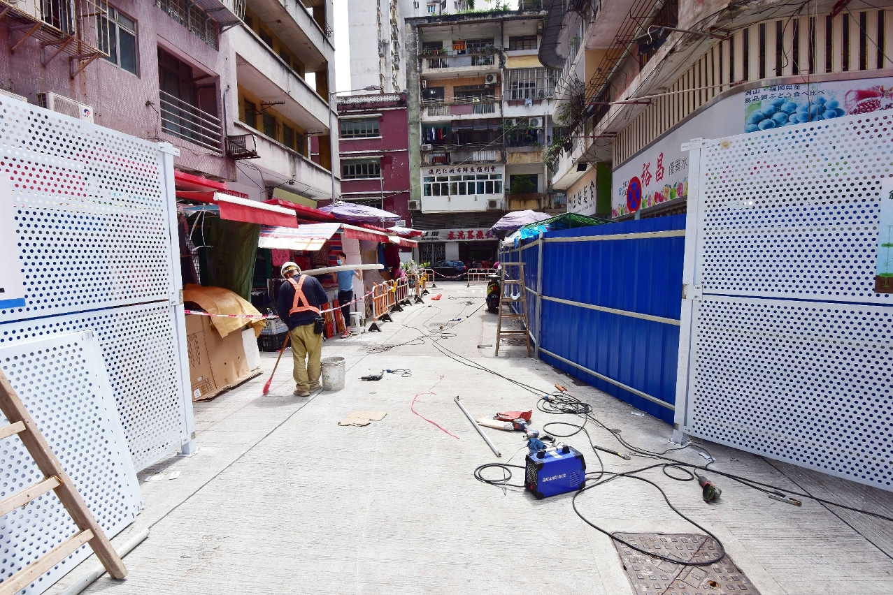 因應原紅街市攤販已順利搬遷至臨時紅街市,市政署隨即啟動紅街市進行圍板、環境衛生整治及滅鼠等前期工作。在紅街市外圍經營的小販,已由原來“背向商舖,面向紅街市”的經營方向,改為“背向紅街市,面向商舖”,在原位置或周邊合適位置繼續經營,無須休業。經聽取紅街市外圍小販對改動後經營環境的意見,市政署今(31日)亦作出優化措施,調整攤位空間及地盤圍板範圍,減低對小販及行人的影響。