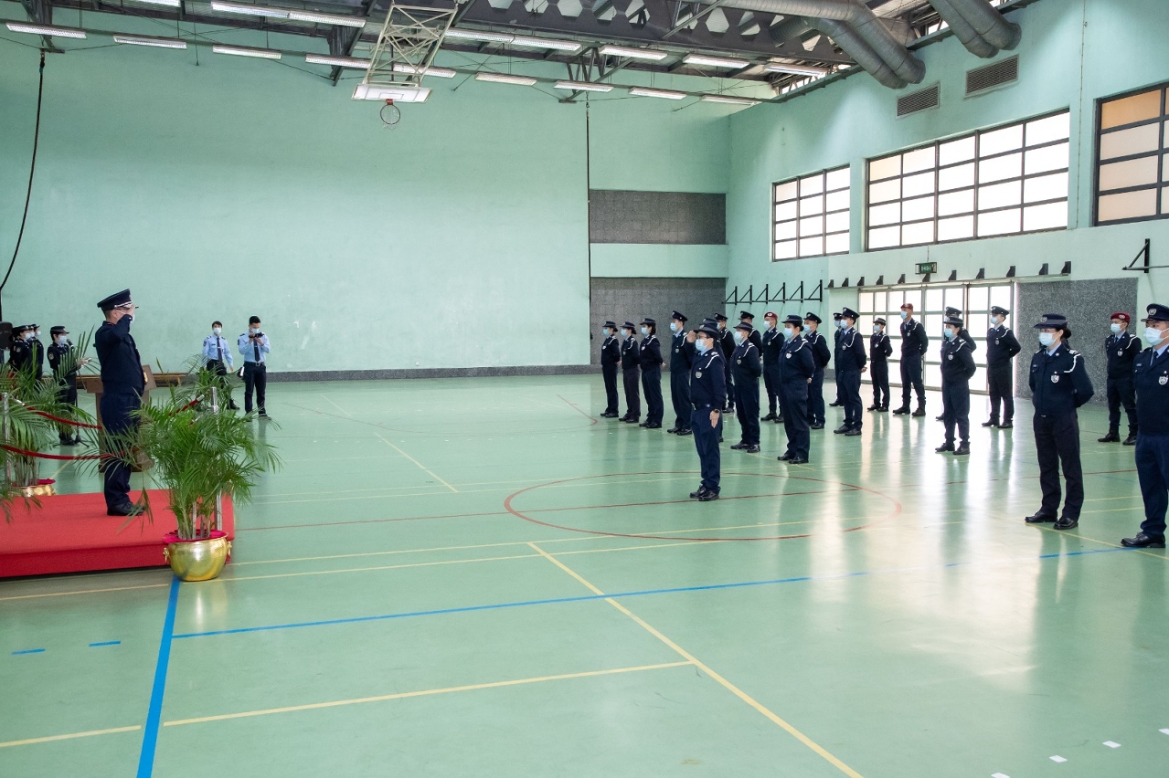 今(20)日上午,治安警察局在特警隊大樓舉行首席警員晉升儀式,儀式由吳錦華局長主持,還有黃偉鴻副局長、梁慶康副局長、伍素萍副局長及各部門的主管出席儀式,為獲晉升的首席警員戴上新肩章,並作出祝賀。