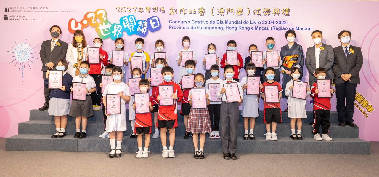 由文化局公共圖書館、香港公共圖書館、廣東省立中山圖書館及深圳圖書館合作舉辦2022年粵港澳“4.23世界閱讀日創作比賽”,澳門區頒獎禮於4月23日(星期六)在南灣舊法院大樓舉行,向得奬者頒發奬狀以及向各得獎者學校致送紀念座,並於現場展出得獎作品,氣氛熱絡。