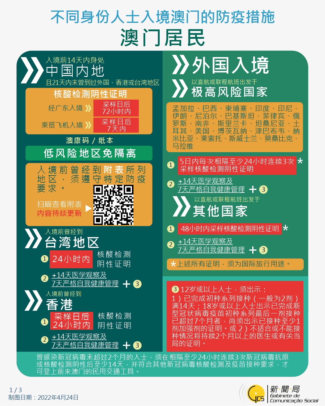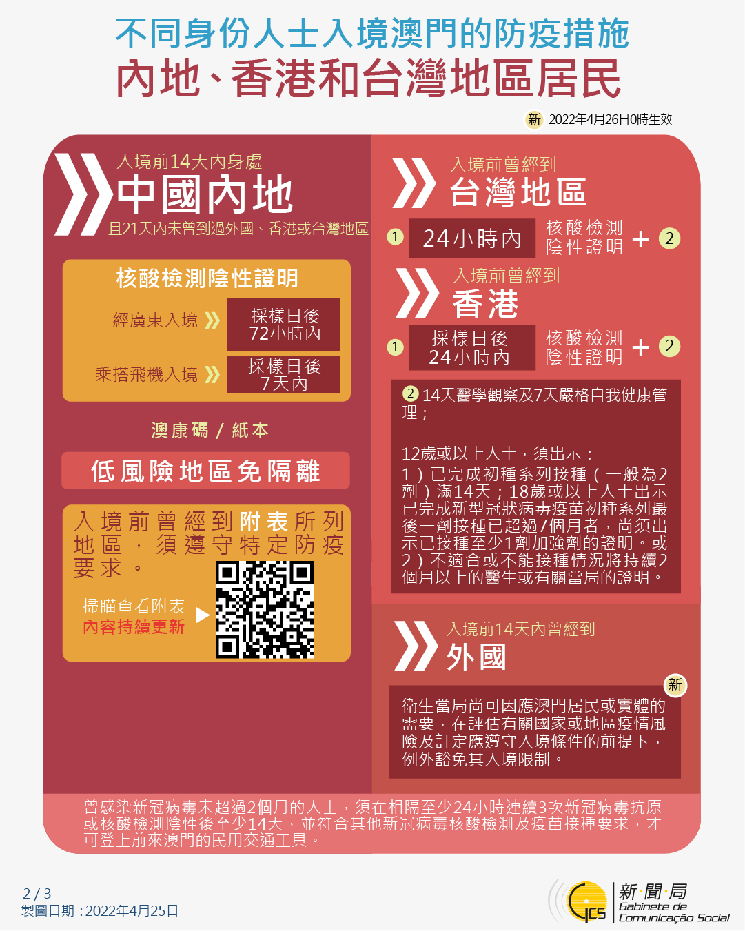 【圖文包】2022/4/25最新入境澳門的防疫措施