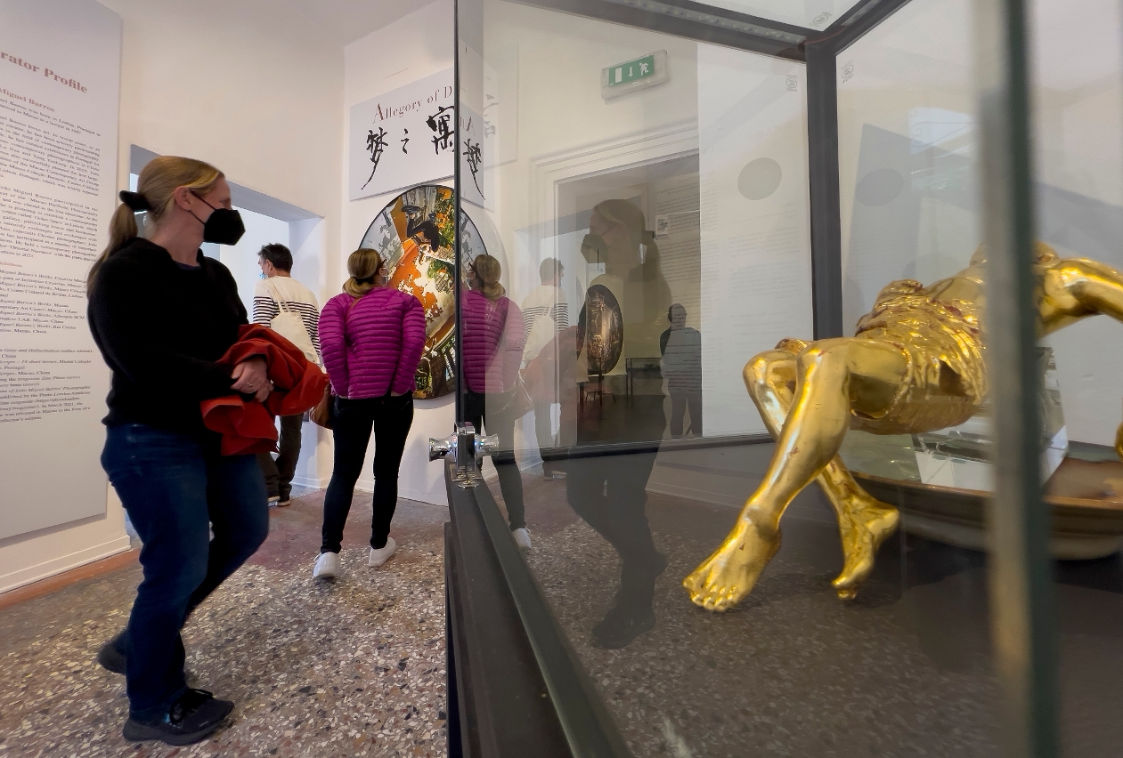 由澳門特別行政區政府文化局轄下澳門藝術博物館主辦、駐威尼斯協辦機構PDG Arte Communications 協辦的第五十九屆威尼斯國際藝術雙年展中國澳門展區展覽“‘一孖’藝術小組:夢之寓言”,已於4月22日在威尼斯揭開帷幕,展覽由國際策展人包偉峰策劃,展出“一孖”藝術小組兩位藝術家吳衛鳴、陳顯耀的11件/套最新綜合性藝術創作,以“天地合一”的獨特視角,重新詮釋澳門豐富而稠密的隱蔽角落,及其如夢般逐漸消逝的記憶。澳門當代創作第八度於此項百年國際藝術盛會中亮相,向觀眾呈現本地視覺藝術面貌。一眾嘉賓到場支持及祝賀,包括意大利策展人保羅‧德‧格蘭迪斯、意大利企業家奧利斯安勞、意大利米蘭文創品牌YouthPlus總監邱樂莎及澳門文化體‧現代畫會代表君士坦丁,“一孖”當日特於威尼斯的中國澳門展區進行《貼金》行為藝術表演,氣氛熱鬧。