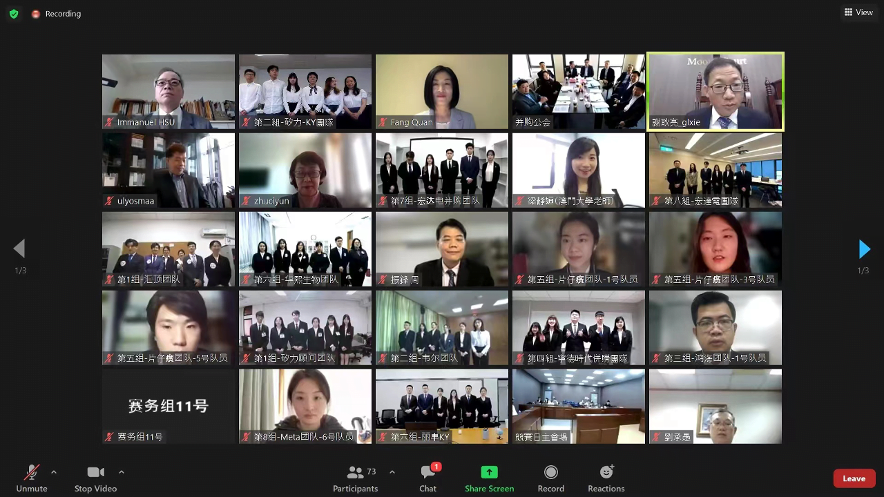 參與賽事的高校包括北京大學、清華大學、台灣大學、澳門大學等16支隊伍。今年的競賽以線上的形式進行,各隊伍展示了合作方案、財務、法律可行性分析、稅務等內容在內的豐碩成果。全聯併購公會會長尉立東表示,競賽為未來併購精英與併購專家提供切磋展示和對話學習的機會,對促進人才培養、推動行業健康發展將產生積極深遠影響。