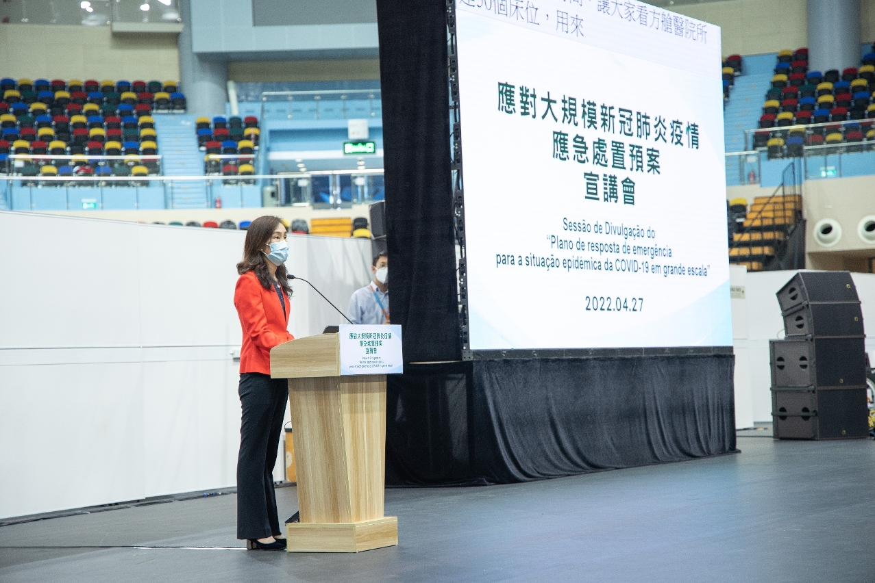 為加強本澳社服界、教育界及醫療界應對大規模新冠肺炎疫情的能力,特區政府分別於4月27日及28日在澳門東亞運動會體育館,舉辦兩場《應對大規模新冠肺炎疫情應急處置預案》宣講會,邀請了社服機構、學校及醫務界人士參與。