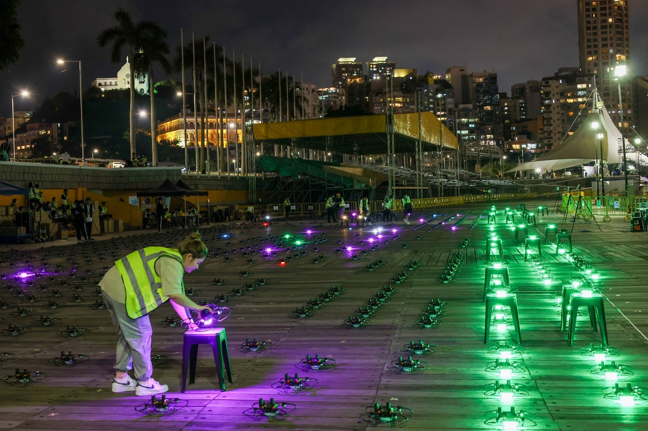 “澳遊四季”為主題的無人機表演將於5月1日、2日、7日和8日四個晚上8時正和9時30分在南灣湖上演,昨(27日) 晚進行試飛,為首演作好準備。