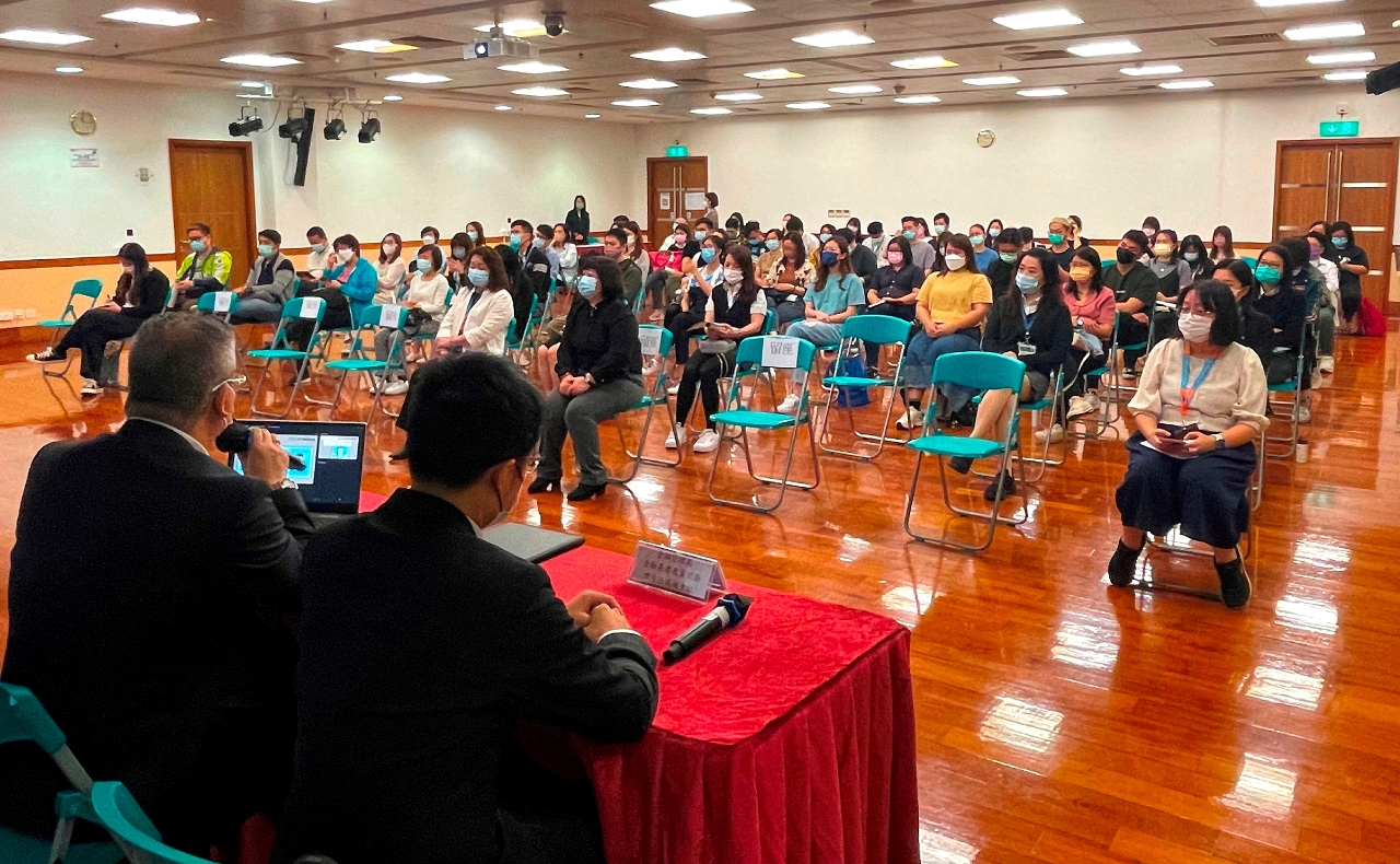 為更好地向上述有需要人士提供適切協助,經科局、金管局及社工局今(5)日組織了社服機構的代表及社工局職員等合共約150人,舉行一連兩場的專場講解會,為工作人員詳細介紹計劃的登記、領取及使用等詳情,並就與會人士的疑問一一作解答。