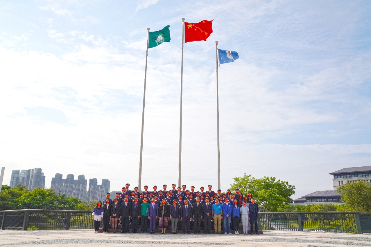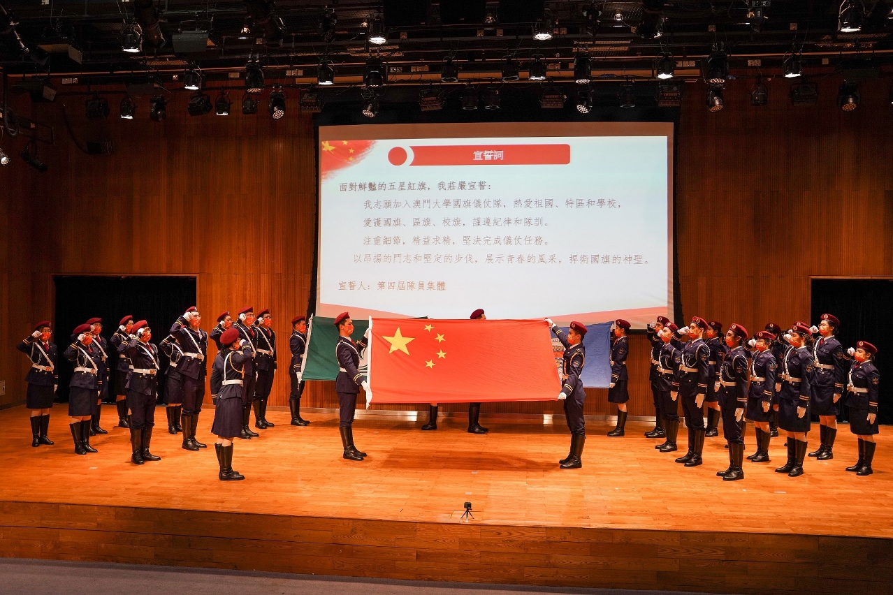 5月4日當天,澳大國旗儀仗隊進行了“堅定傳承,砥礪前行五四青年節”升國旗儀式,以慶祝中國共青團成立100周年及紀念“五四運動”103周年。在雄壯的中華人民共和國國歌中,第4屆澳大國旗儀仗隊隊員圓滿完成了首次執行升旗任務,標誌著他們成功接過守護國旗尊嚴、傳播國旗文化的接力棒。出席的嘉賓還有澳大校長宋永華、學生事務長彭執中、各書院院長和副院長,以及兩百餘名澳大師生。