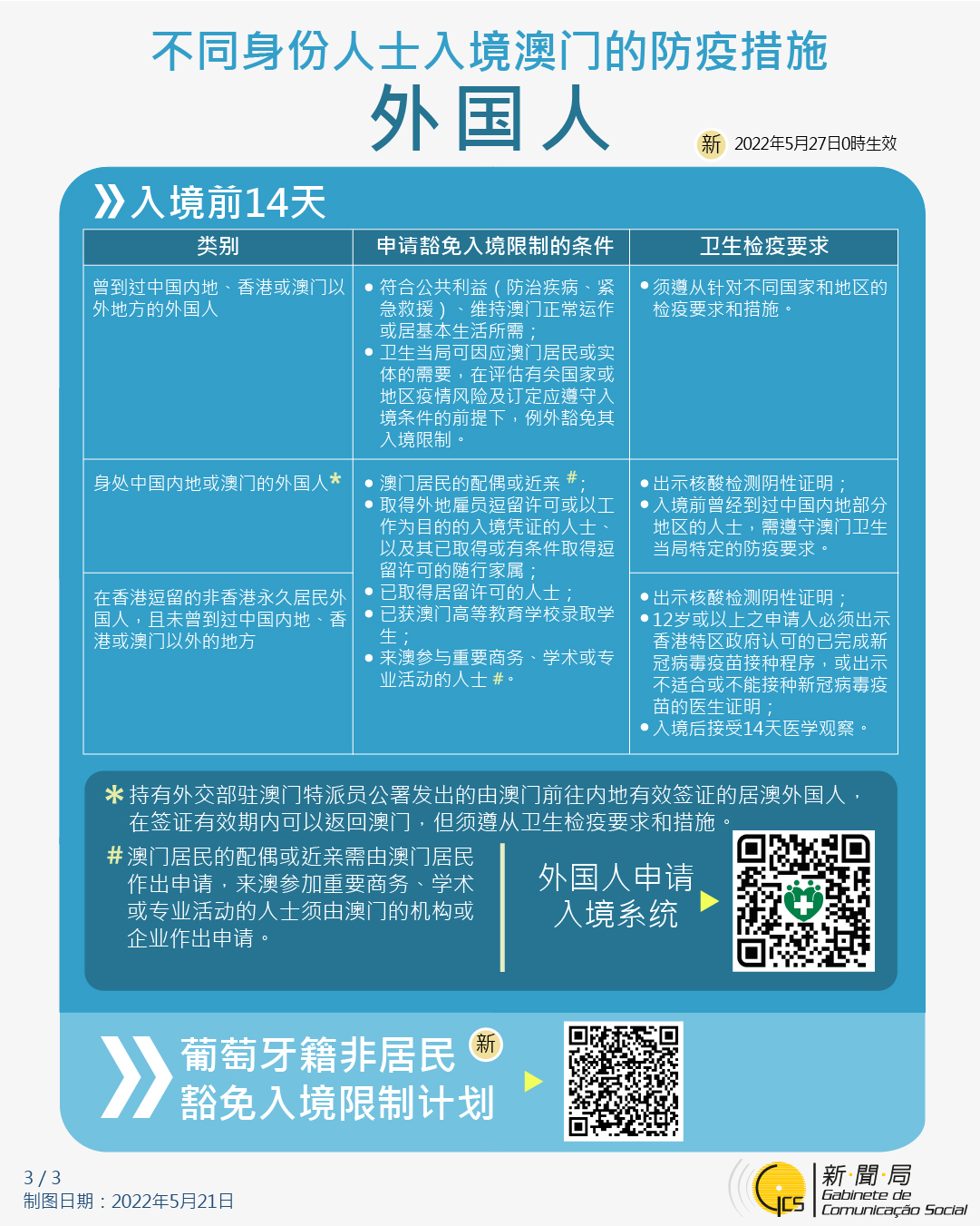 【圖文包】2022/5/21最新入境澳門的防疫措施