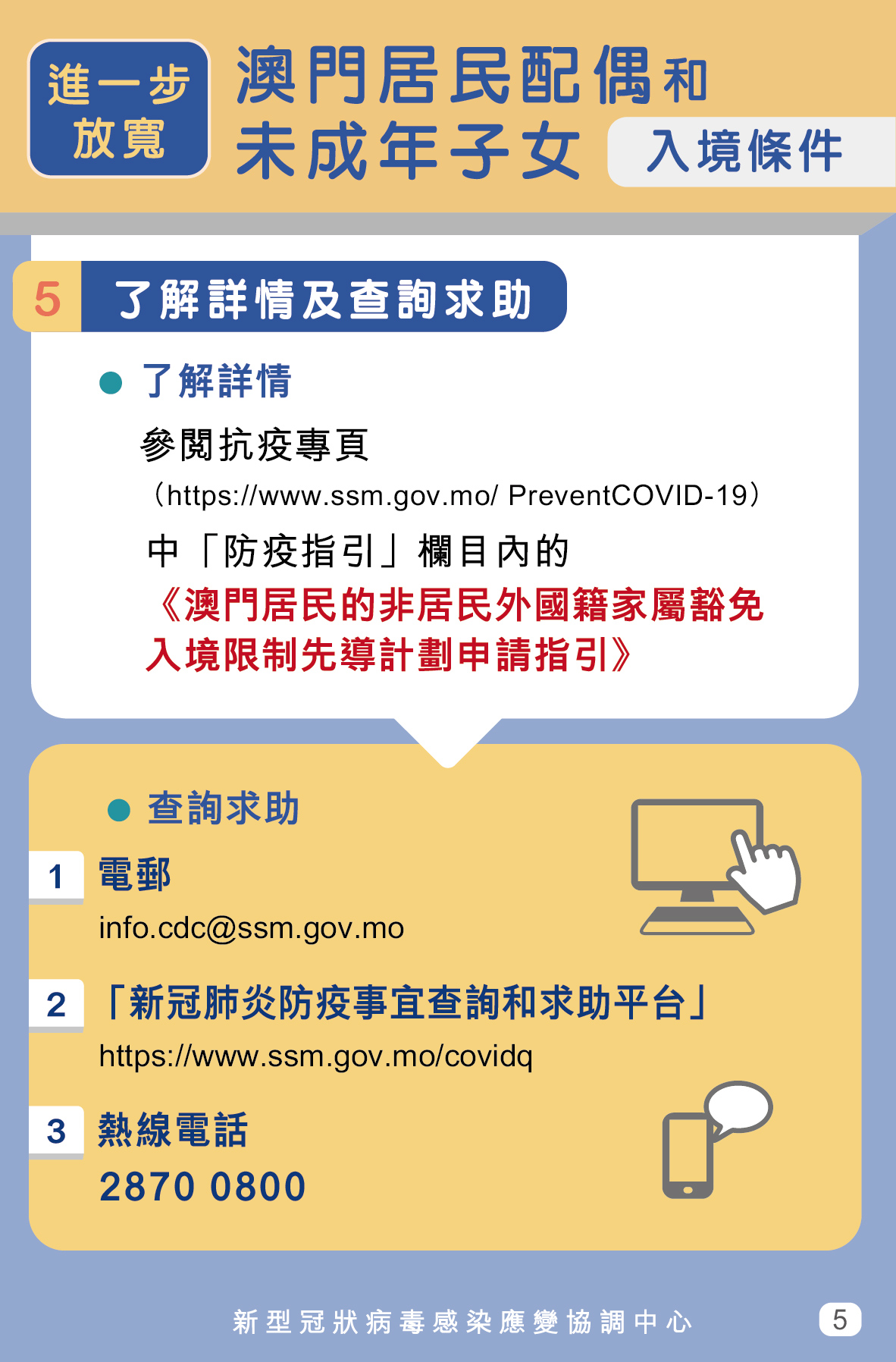 有關計劃的詳情請參考新型冠狀病毒感染應變協調中心抗疫專頁-防疫指引上登載的《澳門居民的非居民外國籍家屬豁免入境限制先導計劃申請指引》。