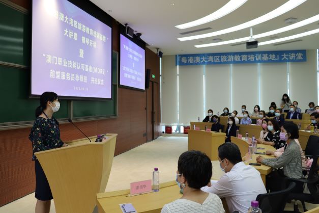 活動上,澳門旅遊學院院長黃竹君博士作致辭。黃竹君表示,澳門與橫琴一衣帶水,有著高度契合的發展目標,在《橫琴粵澳深度合作區建設總體方案》明確提出了“推動橫琴澳門共同躋身世界級旅遊目的地之列”。黃竹君提出,橫琴培訓基地對於澳門旅遊學院融入粵港澳大灣區建設有著重要意義。下一步,澳門旅遊學院將以橫琴培訓基地為載體,通過持續開展優質的職業培訓,導入澳門職業技能認可基準(MORS),助力橫琴粵澳深度合作區培養對標國際的複合型旅遊人才,為橫琴粵澳深度合作區、粵港澳大灣區文旅產業發展提供更多牽引力,不斷推動文旅行業高品質發展。