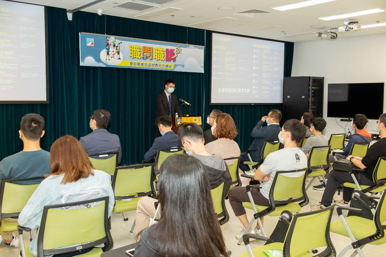 由2022年1月至今,已舉辦5場講座,主題有“AI賦能”、“中醫藥產業”、“電子支付行業”、“金融科技業”和“智慧城市的運用技術”,累計線上線下有406人參與,當中線上參加者有312人,其中就讀高中和高校的青年有196人,約佔50%。