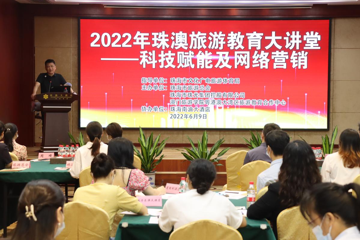 在珠海市文化廣電旅遊體育局指導下,珠海市旅遊總會、珠光集團聯合澳門旅遊學院粵港澳大灣區旅遊教育合作中心主辦的“2022年珠澳旅遊教育大講堂”於6月份啟動,第一講為“科技賦能及網路行銷”,主講嘉賓為澳門旅遊業界專家鍾俊傑,他是金沙中國電子商務及數位化轉型副總裁。