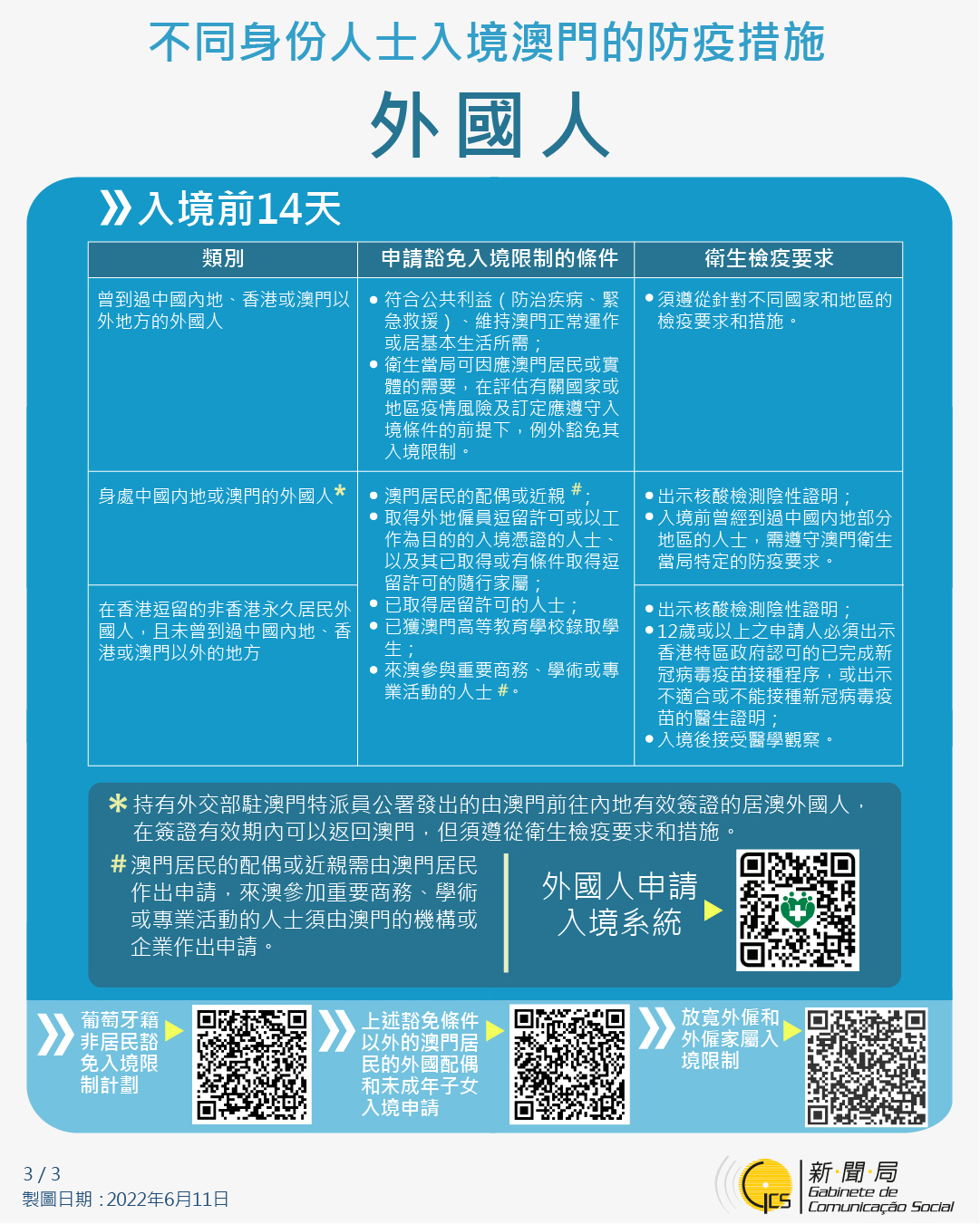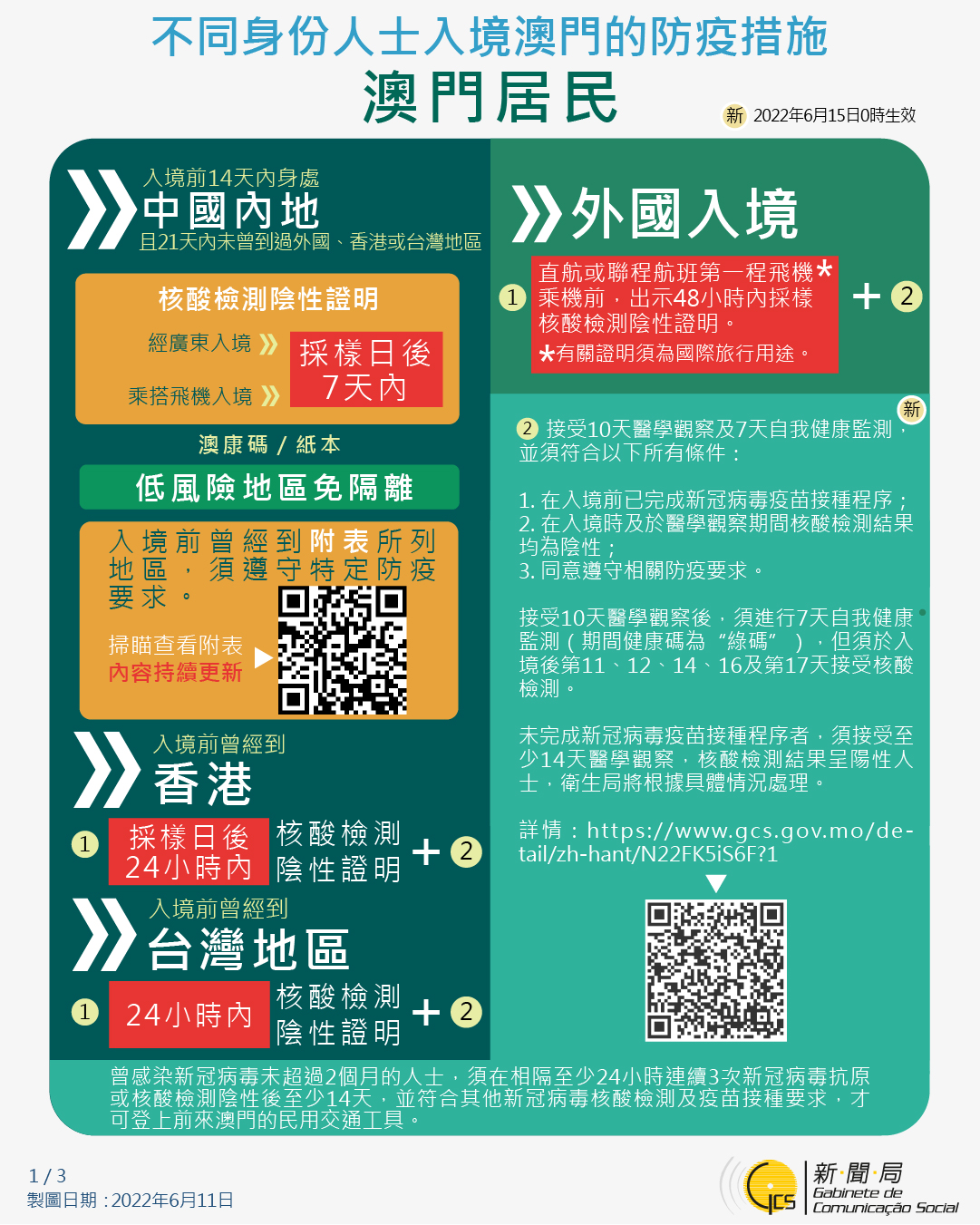 【圖文包】2022/6/11最新入境澳門的防疫措施