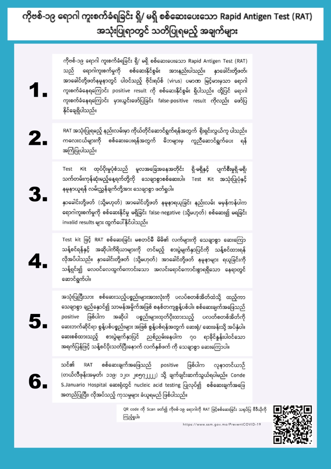 新型冠狀病毒快速抗原檢測操作步驟及使用注意事項圖文包(緬甸語)