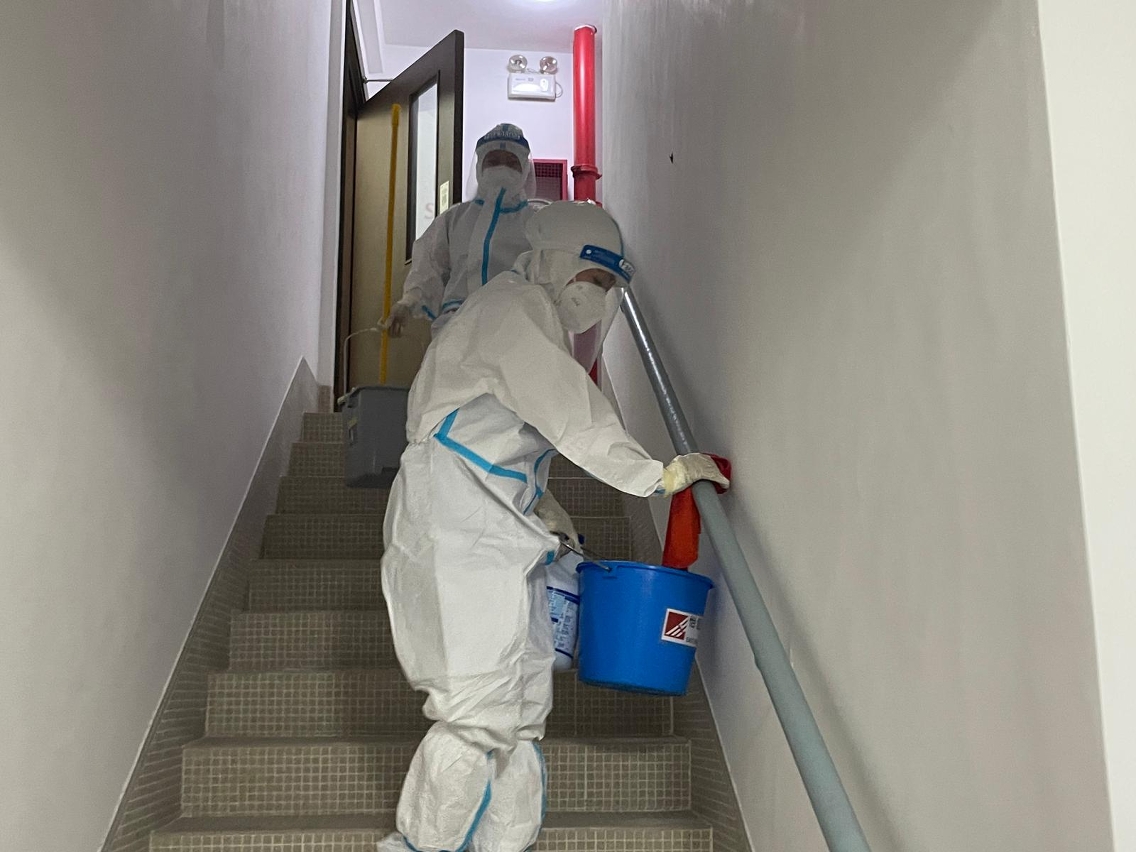 市政署對確診病例居所大廈加強清潔消毒