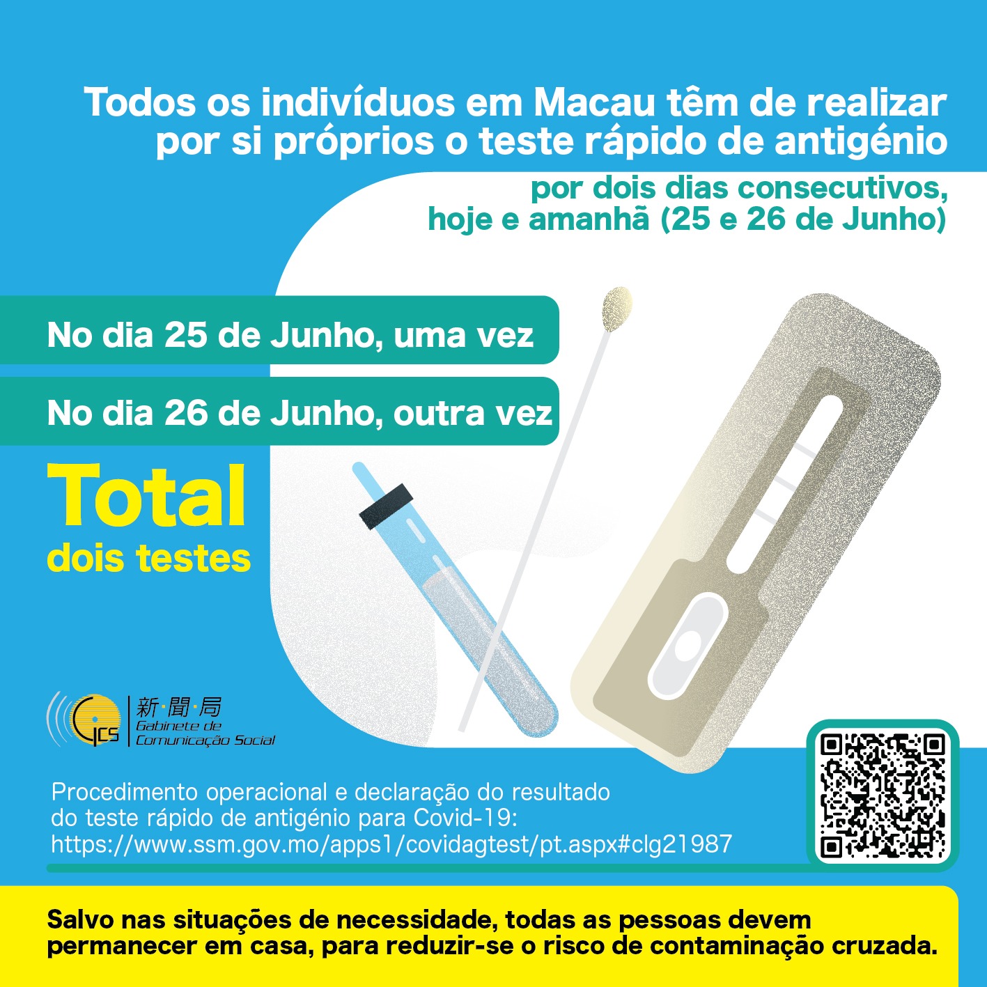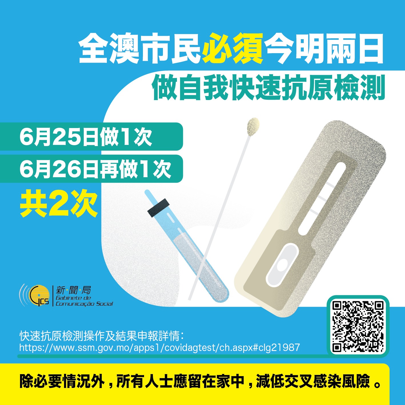 全澳市民必須今明兩日做自我快速抗原檢測(葡文)