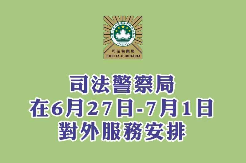司法警察局於6月27日至7月1日對外服務安排