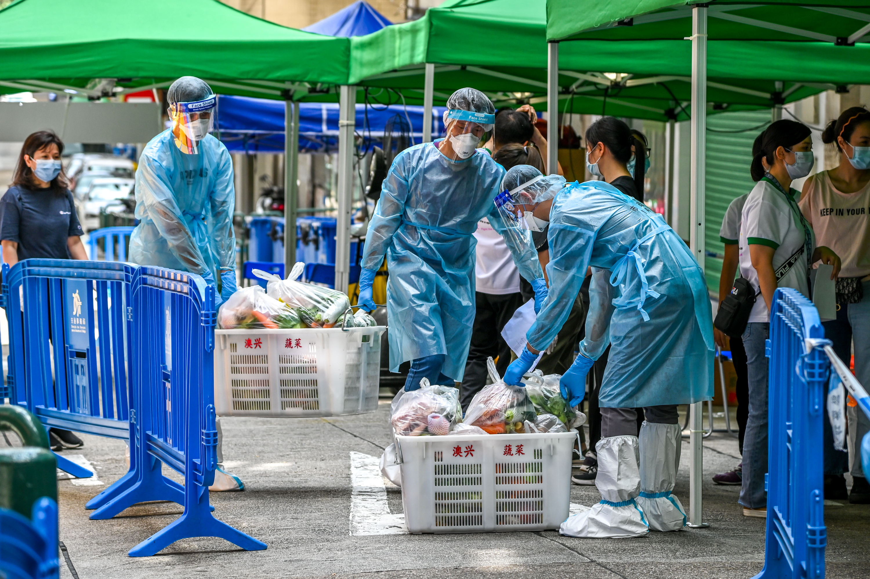 須強調的是,關閉提供非緊急服務的公共部門並不影響全體各級公務人員在不同工作地點處理極其大量的前線和後勤支援工作,包括處理資訊發佈、聯繫協調、調動物資及協助居民等;同時,因應紅碼封控區數量的增加,前線抗疫人員的工作壓力激增,為數不少的各部門人員投身到前線和後勤,協助紅碼封控區內的維生支援工作,例如派送物資予被管控的住戶。此外,也有相當多的公務人員到核酸檢測站與場所人員、社團和學校老師等,眾志成城共同維持站內秩序,以及協助居民順利完成核檢安排,共同抗擊疫情。