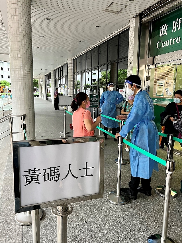 黑沙環政府綜合服務大樓、離島政府綜合服務中心於今(4)日起恢復運作,提供有限度對外公共服務。現場設有“黃碼人士專道”,排隊市民亦自覺保持一米距離,秩序良好。配合防疫,避免人群聚集,市民應先透過 www.csraem.gov.mo/csrbooking/ 預約,再按時間到場辦理服務,查詢可致電2845 1515或2842 1212。