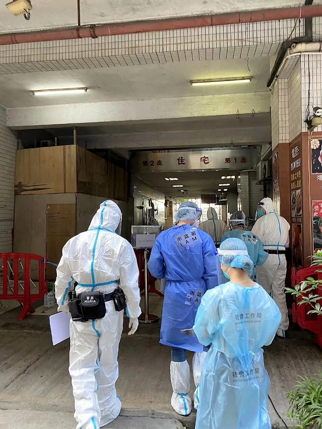 市政署已通宵完成七個新增紅碼大廈公共空間的大型清潔及消毒工作,以及在防控區內搭建臨時核酸採樣站及前線協調站。如對防疫措施有任何查詢,可致電新型冠狀病毒感染應變協調中心查詢熱線28700800。